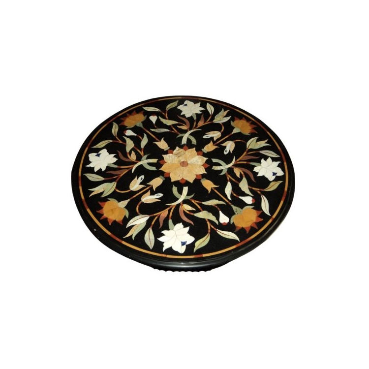 โต๊ะกาแฟหินอ่อนฝังง่ายต่อการตกแต่งบ้านอัญมณีกึ่งมีค่าฝัง pietra เฟอร์นิเจอร์วิลล่าคอลเลกชันสีดำทันสมัย
