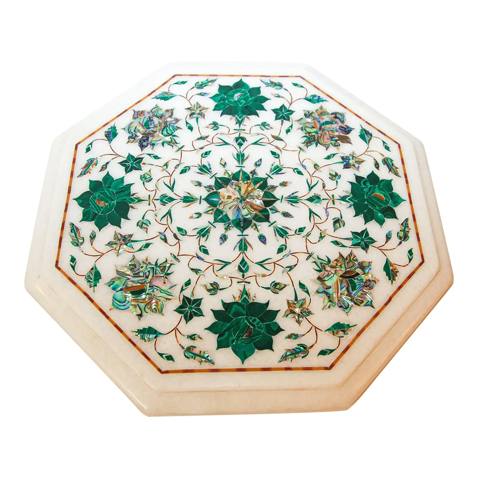 โต๊ะกาแฟฝังหินอ่อนสไตล์จักรพรรดินีฝังเพชรกำมะหยี่อัญมณีสำหรับบ้านเครื่องตกแต่งบ้านเครื่องตกแต่งบ้าน