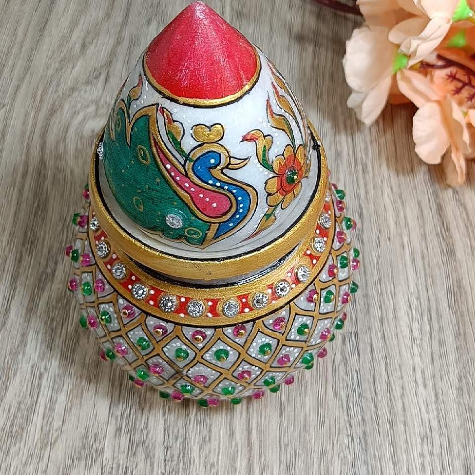 งานศิลปะหินอ่อนคาลาชและมะพร้าว Meenakri ขนาด5นิ้ว