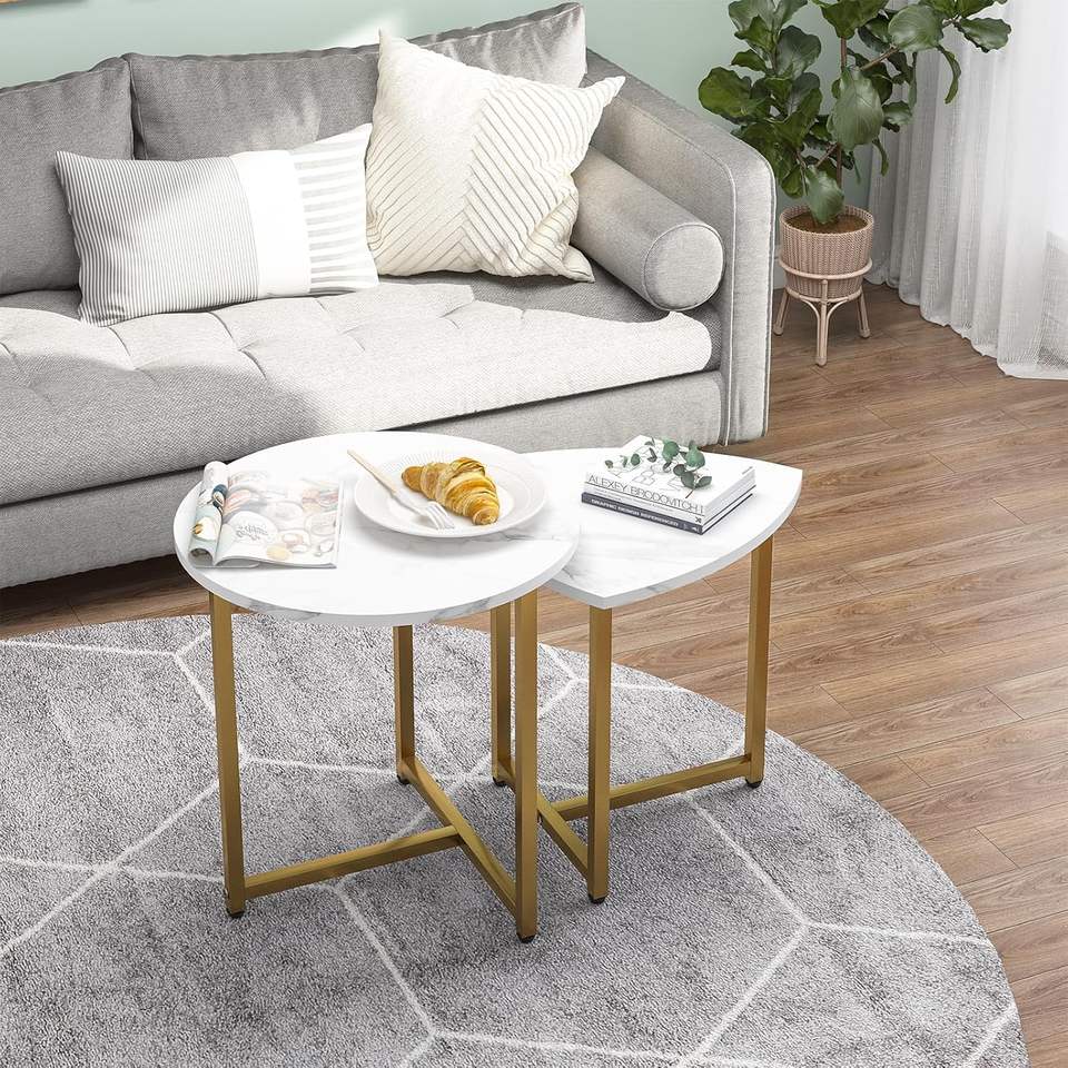 โต๊ะกาแฟซ้อนกันลายหินอ่อน: โต๊ะข้างทรงกลมและสี่เหลี่ยมพร้อมที่เก็บของ