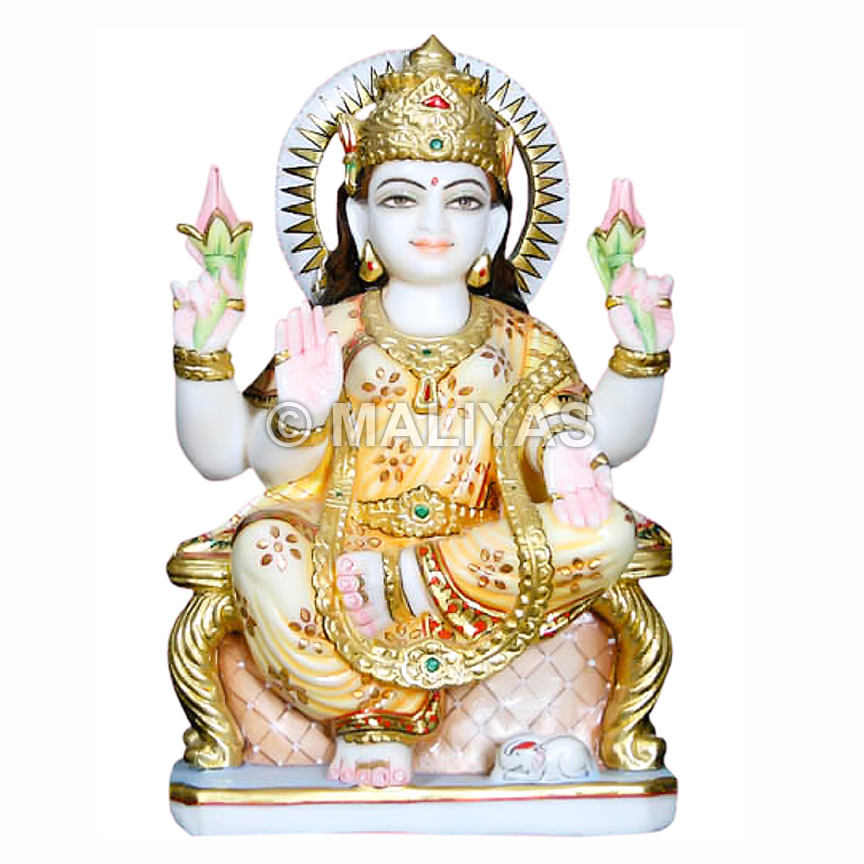 รูปปั้นพระแม่ลักษมีหินอ่อน | พระลักษมีหินอ่อนแกะสลักด้วยมือสำหรับบ้านและวัด – มาลียาส