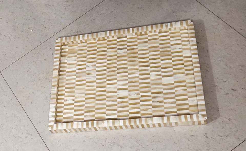 ถาดเสิร์ฟลายหินอ่อนโมเสคพร้อมเม็ดหอยมุกสไตล์โบฮีเมียนทันสมัยของขวัญตกแต่งบ้านแบบชนบท
