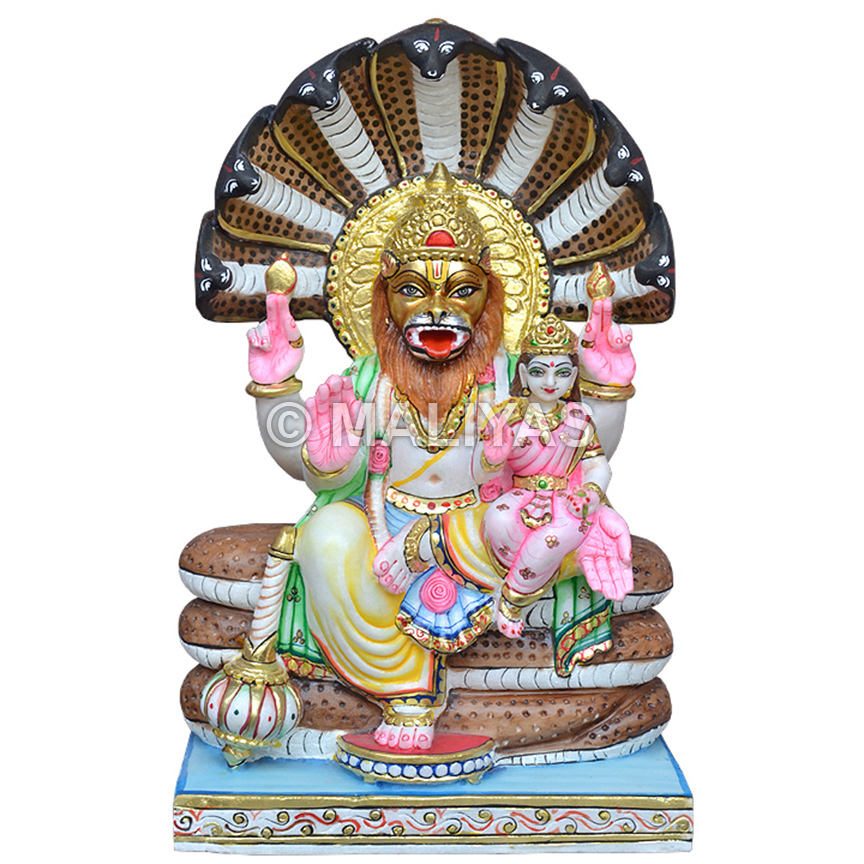 รูปปั้นหินอ่อนนาร์ซิงค์พร้อมลาคสมี | พระพุทธรูปหินอ่อนลักษมีนราสิมฮา – มาลียาส