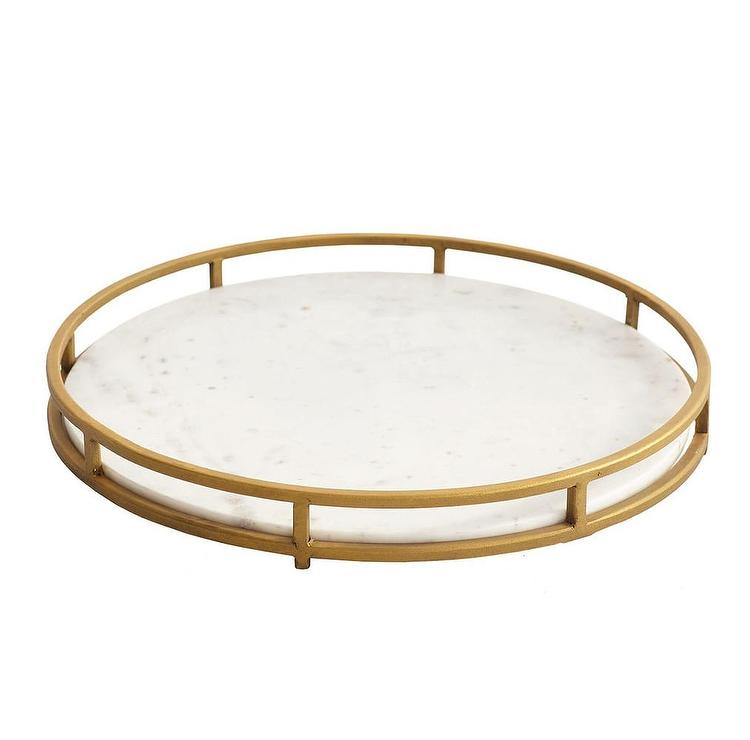 ถาดเสิร์ฟหินอ่อน ขอบทองเหลือง ดีไซน์หรูหราทันสมัย งานฝีมือ ถาดเก็บของหินอ่อนสไตล์ร่วมสมัย