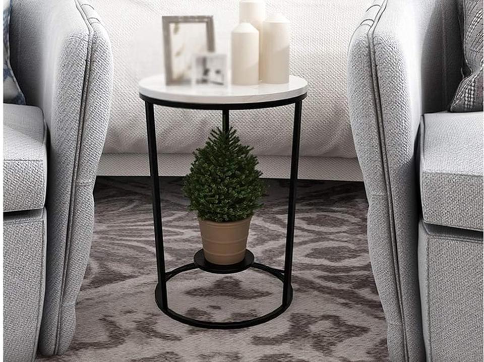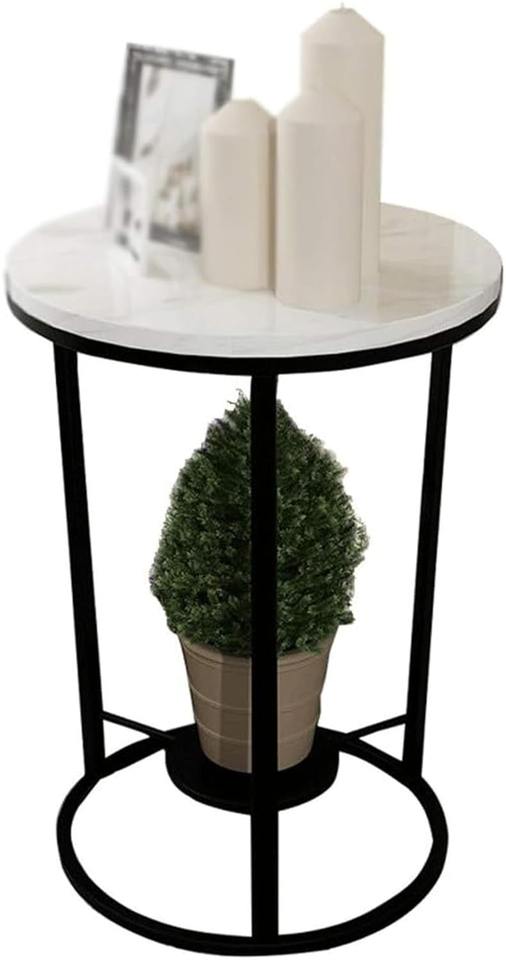 Sturdy MDF Top White Marble Finishing 2 Tier Corner Casual Coffee Black Wrought Iron Side Table For Home Bedroom Living Room