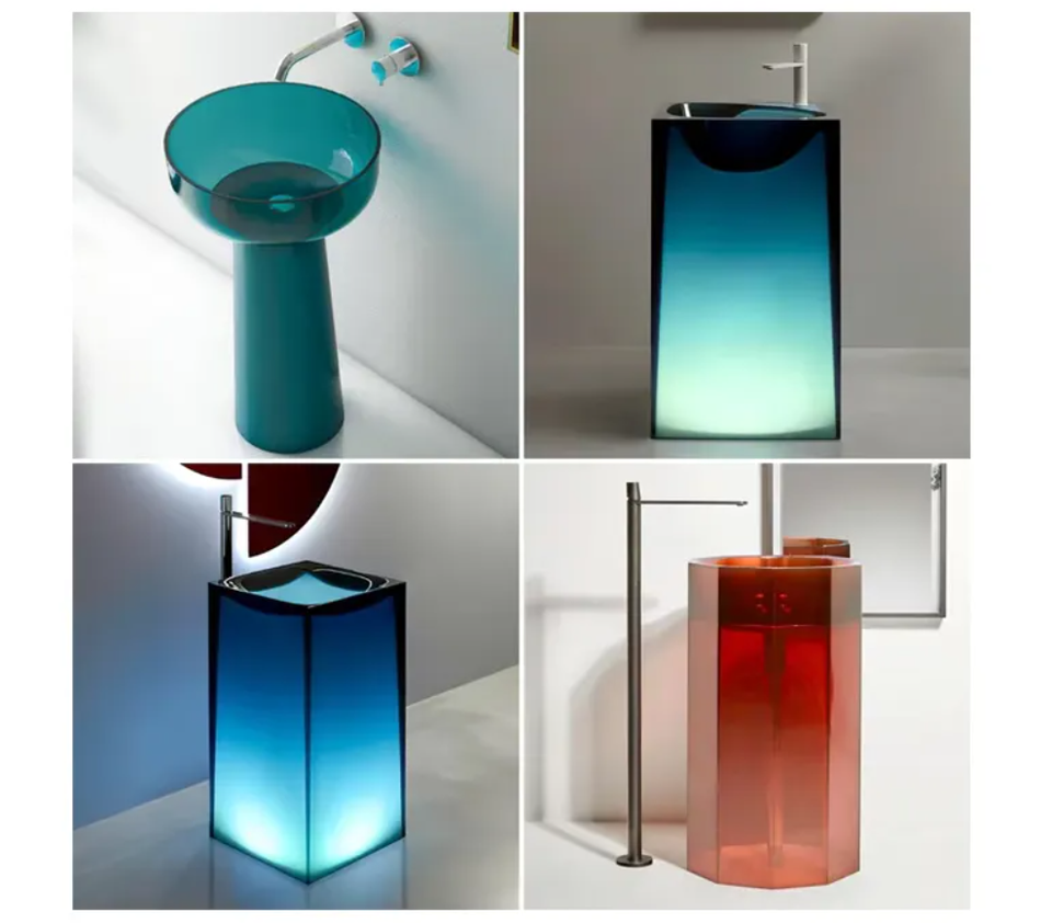 อ่างล้างจานโรงแรมหินอ่อนพื้นผิวแข็งแบบทันสมัยพร้อมที่ระบายน้ำสำหรับร้านเสริมสวย