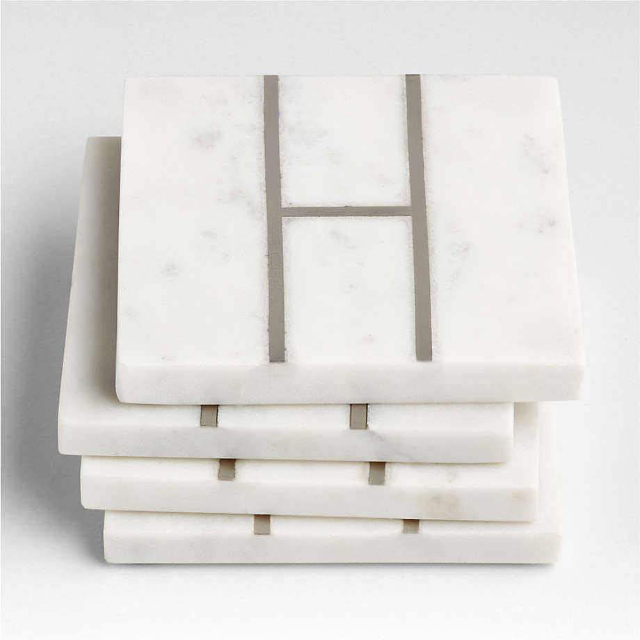 หินอ่อนหินและทองเหลืองฝัง B ล่าสุดตัวอักษร Coasters ออกแบบใหม่เสิร์ฟชา Coasters 4 ชิ้นชุดจานรองแก้วกล่องกระดาษทิชชู