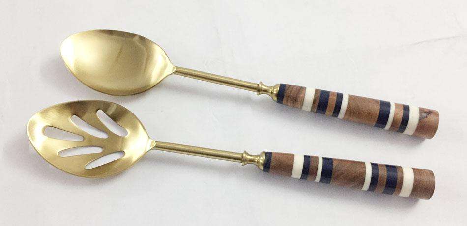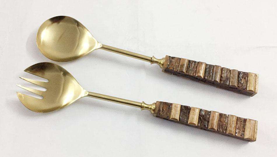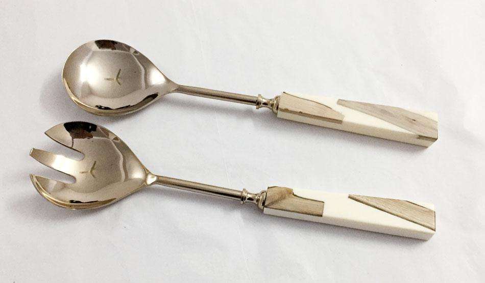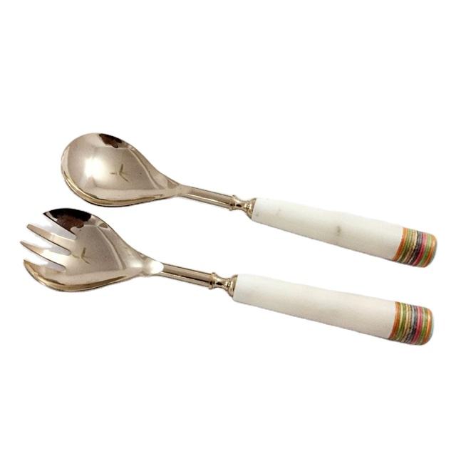 หินอ่อนหินจับโลหะตกแต่งชุดเสิร์ฟสแตนเลสนูนสลัดเสิร์ฟชุดเครื่องมือสลัด
