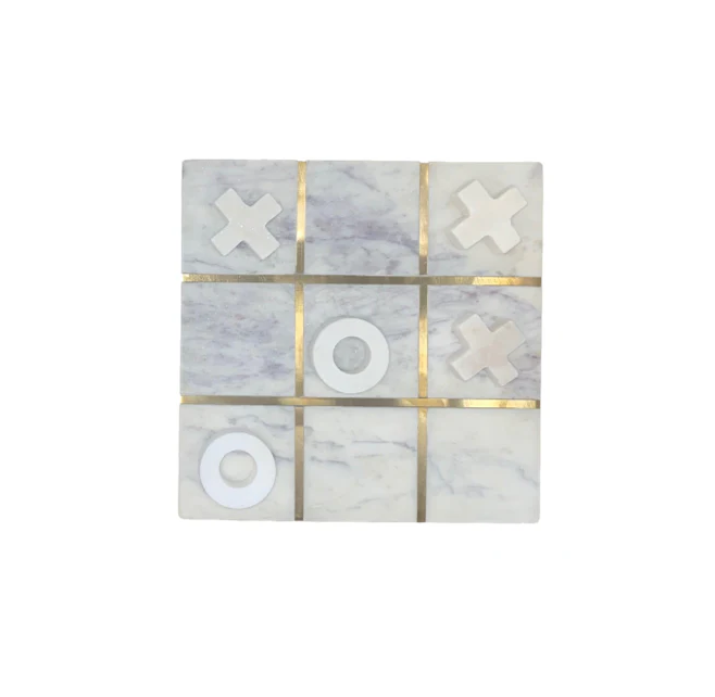 บอร์ดเกมหินอ่อน Tic Tac TAC TAC Tac Toe อุปกรณ์เสริมพื้นโต๊ะหินอ่อนสีขาวสีดำ