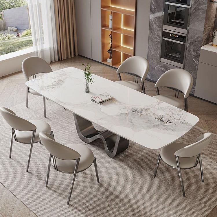หินอ่อนท็อปโต๊ะรับประทานอาหารขนาดเล็กหรูหราหรูหราหรูหรามากสี่เหลี่ยมสไตล์มินิมอลลิสต์สีเทาอ่อนหรูหราโต๊ะรับประทานอาหารยาว