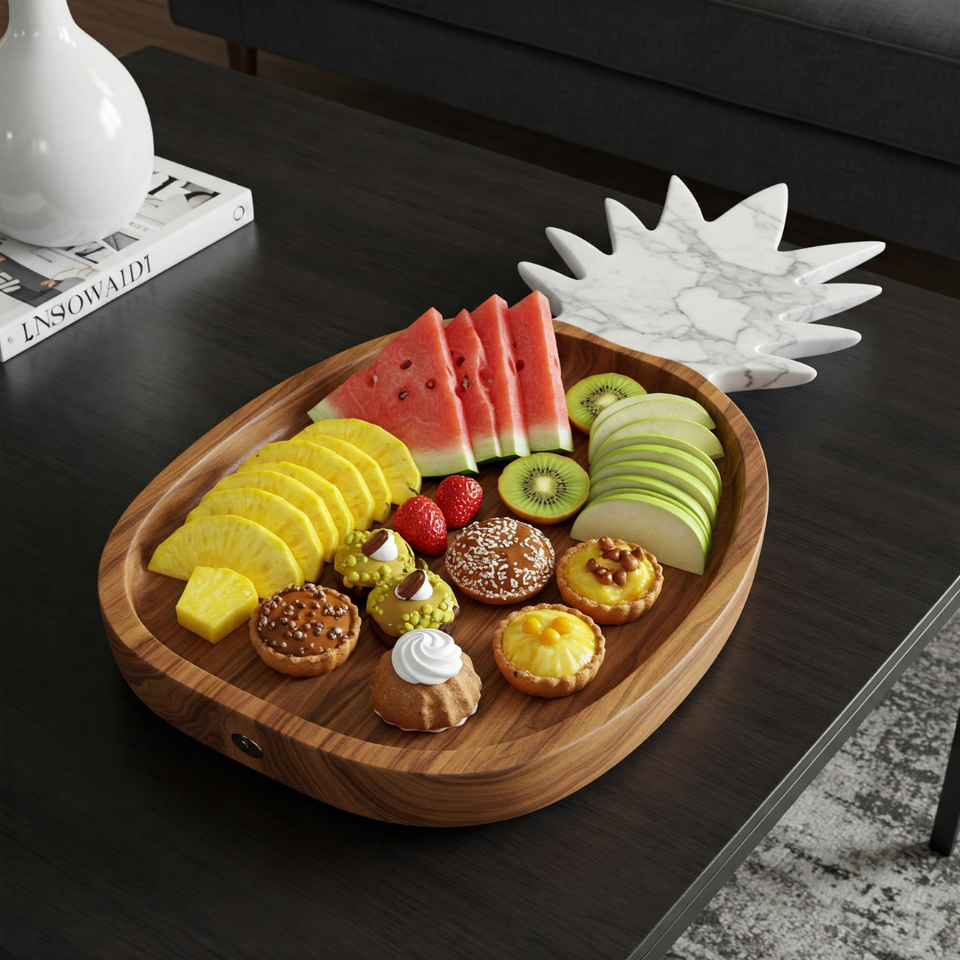 ถาดเสิร์ฟสับปะรดหินอ่อนและไม้แกะสลักแบบกำหนดเองงานศิลปะสมัยใหม่2024ปาร์ตี้ไวรัสเขตร้อน