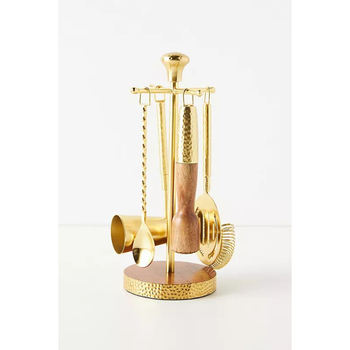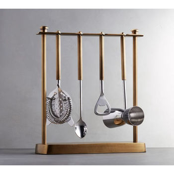 ชุดอุปกรณ์บาร์สแตนเลสขัดเงากระจกหินอ่อนและอลูมิเนียมชุดเครื่องเงินหรูหราสำหรับบาร์ในบ้าน
