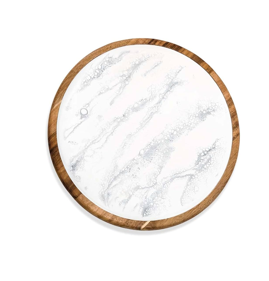ถาดหินอ่อนและไม้สำหรับใส่ในห้องน้ำลายซูซานขี้เกียจจัดเก็บเครื่องประดับทรงสี่เหลี่ยมสไตล์ซูซานสำหรับคนขี้เกียจใช้ในงานปาร์ตี้