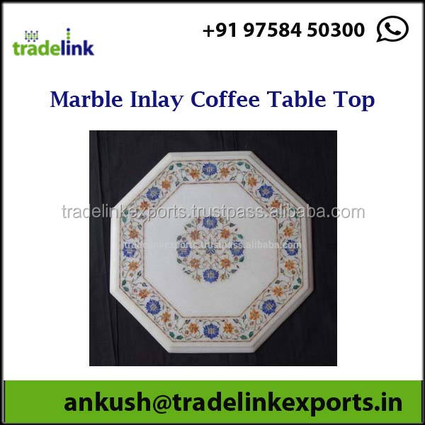 หินอ่อนฝังบนโต๊ะกาแฟหินอ่อนโบราณฝังหินอ่อนทำมืออินเดียงานศิลปะตกแต่งบ้านเฟอร์นิเจอร์