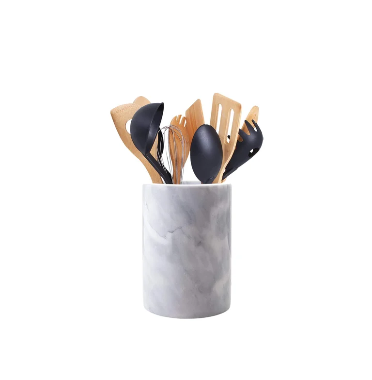 ที่ใส่ช้อนหินอ่อนทำด้วยมือหินอ่อนธรรมชาติพร้อมรูหินโบราณเครื่องใช้ในครัว