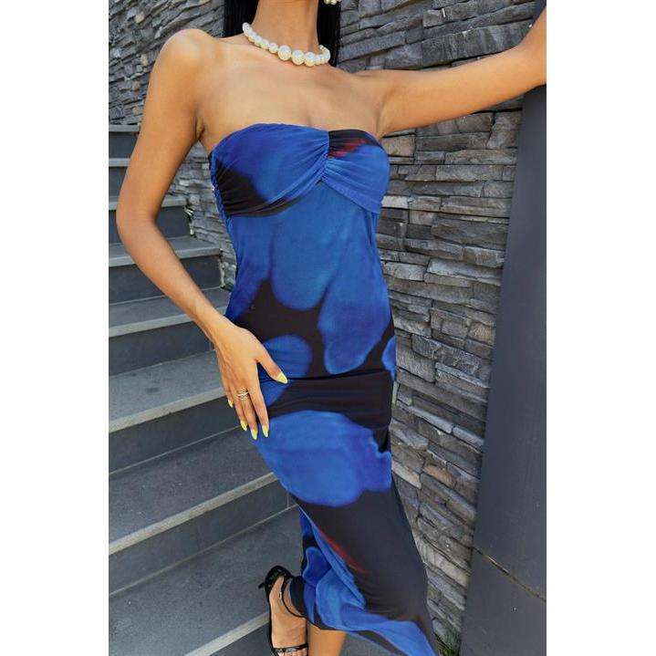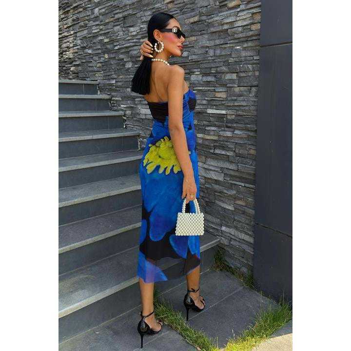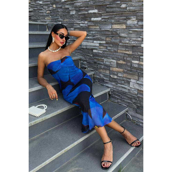 เดรสลายพิมพ์แบบไร้สายรัดไหล่ Marcella รุ่น 2574-08 ระบายอากาศได้ดี พร้อมดีไซน์เอวธรรมชาติ