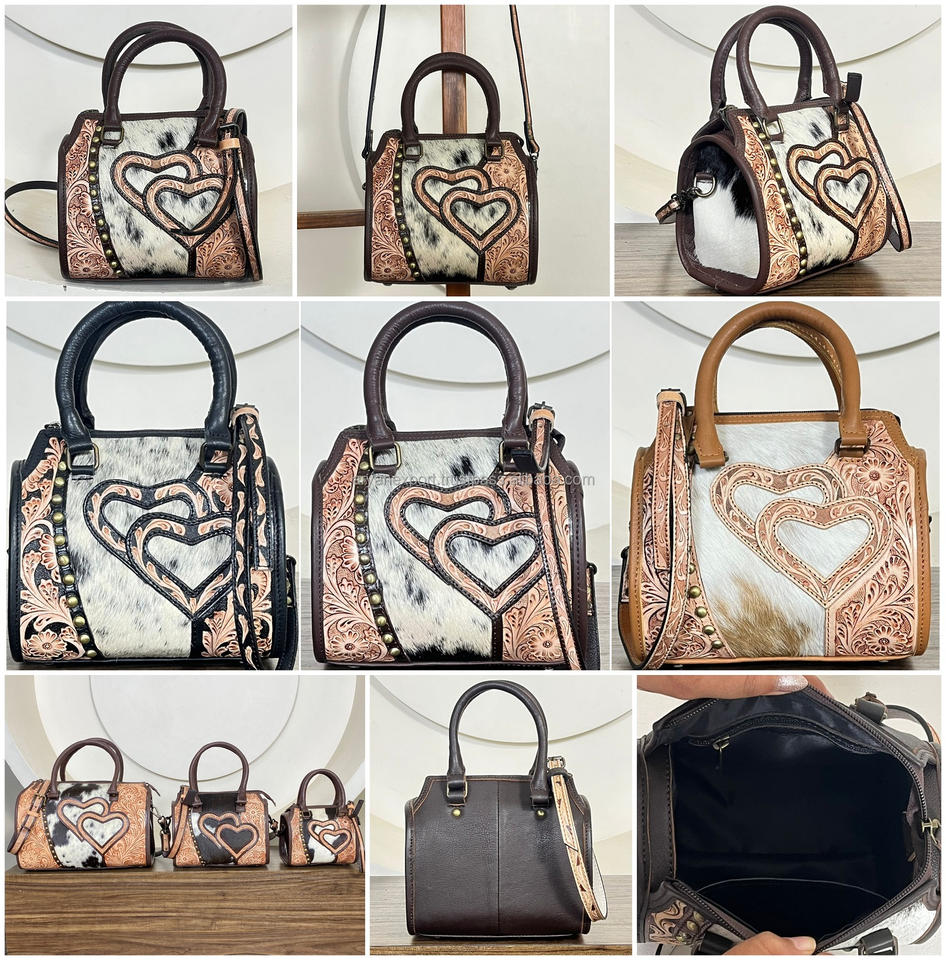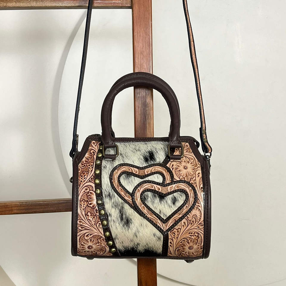 กระเป๋าหนังวัวแท้ลายแกะสลักด้วยมือ รุ่น Speedy Bag ประดับหัวใจ ดีไซน์เนอร์ สำหรับงาน March Expo 2026 แบบสะพายไหล่หรือถือได้ เหมาะสำหรับทุกเพศ