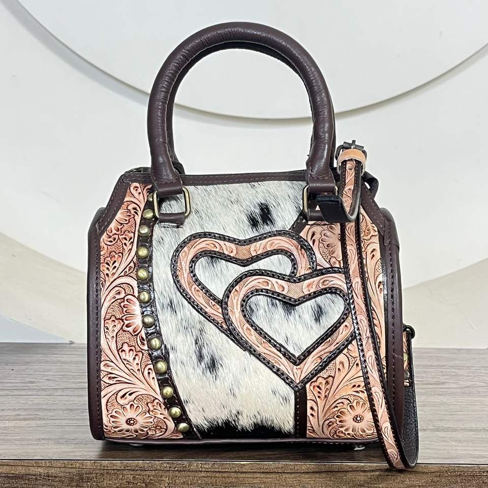 กระเป๋าหนังวัวแท้ลายแกะสลักด้วยมือ รุ่น Speedy Bag ประดับหัวใจ ดีไซน์เนอร์ สำหรับงาน March Expo 2026 แบบสะพายไหล่หรือถือได้ เหมาะสำหรับทุกเพศ