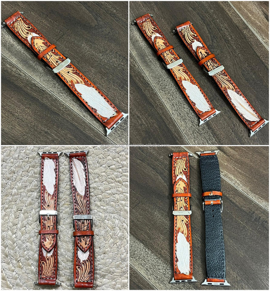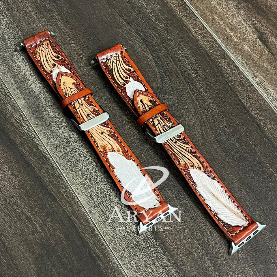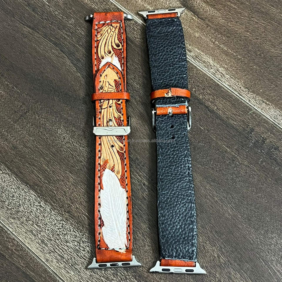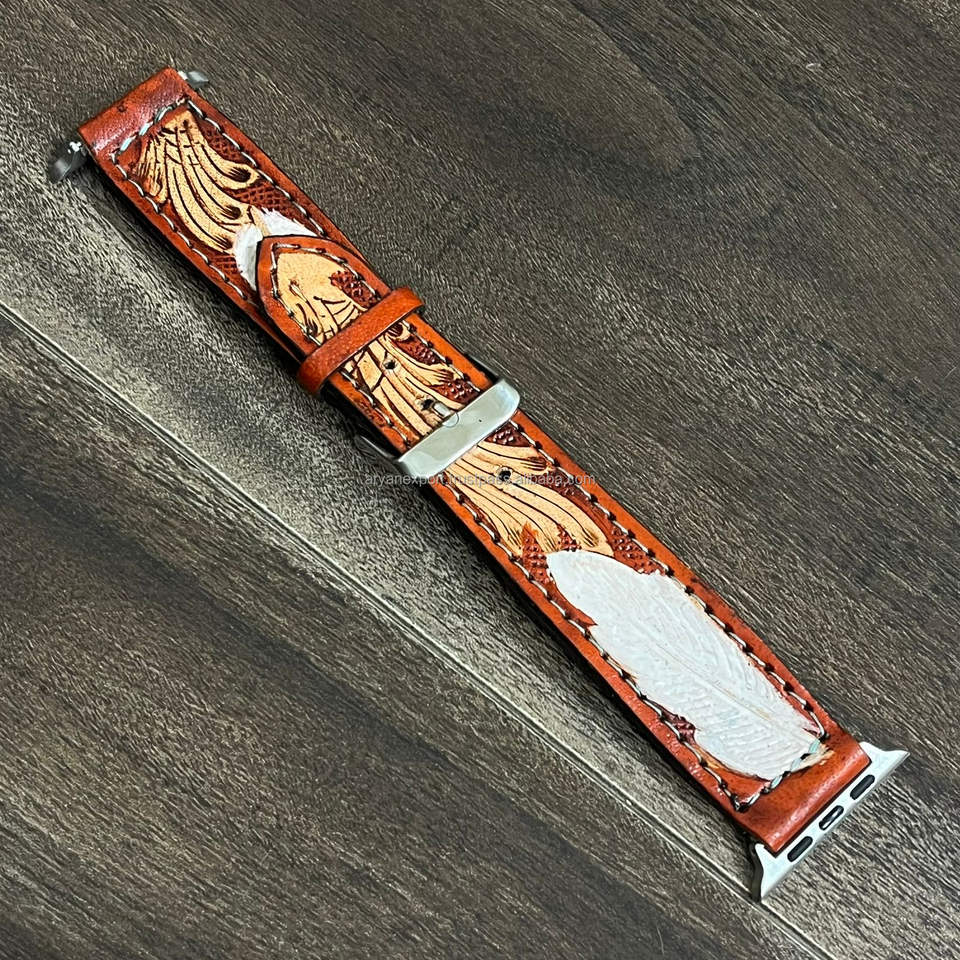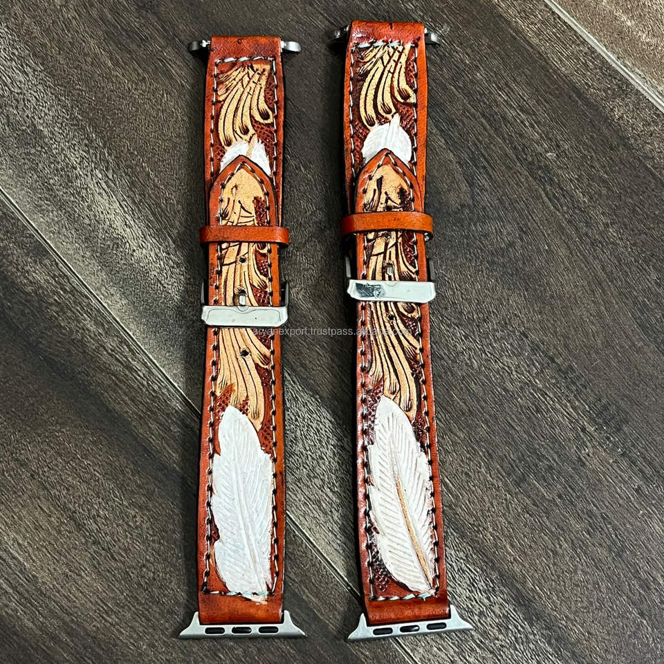 สายนาฬิกา Apple Watch หนังแท้สลักลายดอกไม้สไตล์ตะวันตก งานแฮนด์เมด สำหรับงาน March Expo 2026 สายรัดข้อมือ iWatch วินเทจ สำหรับทุกเพศ