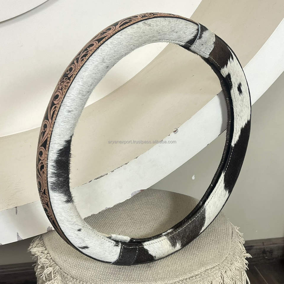 ปลอกหุ้มพวงมาลัยหนังวัวแท้ลายแกะสลักด้วยมือสำหรับงาน March Expo ของตกแต่งและป้องกันพวงมาลัยรถยนต์ อุปกรณ์ตกแต่งภายในรถยนต์สุดหรู