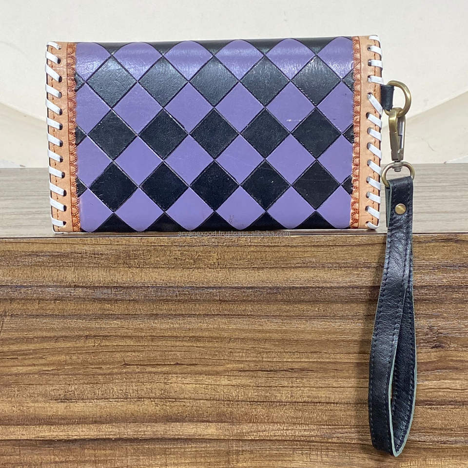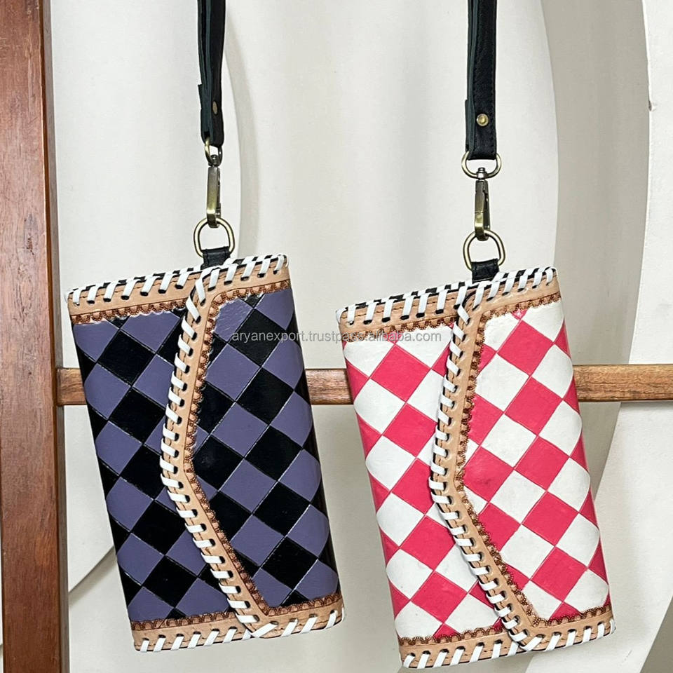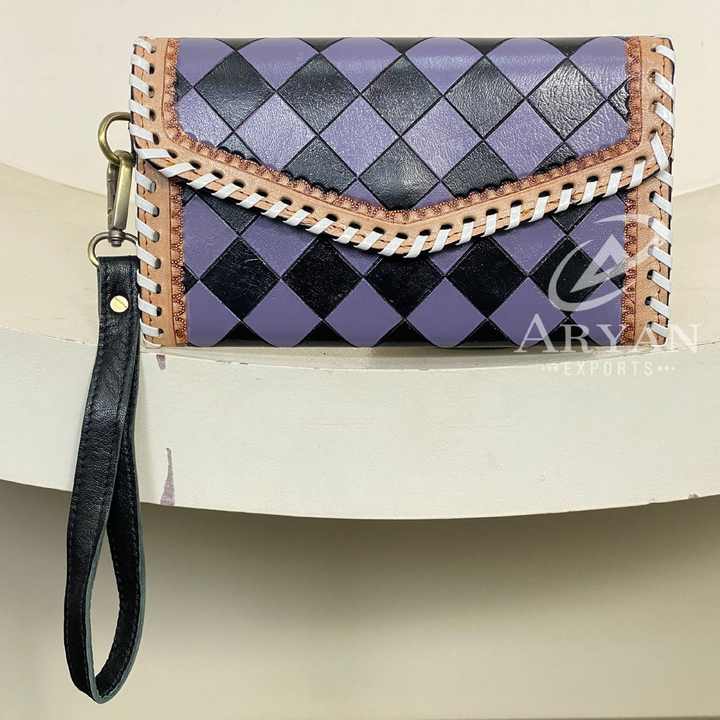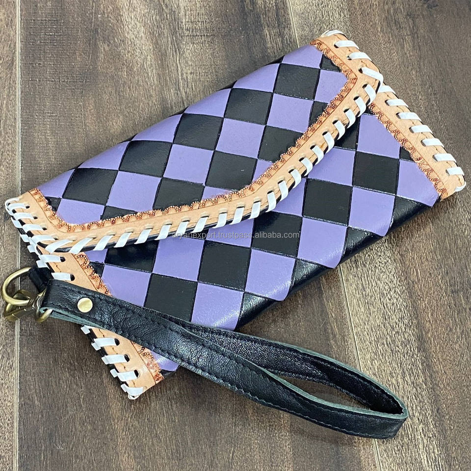 Product name:Hand Tooled Checkered Leather Wristlet Wallet