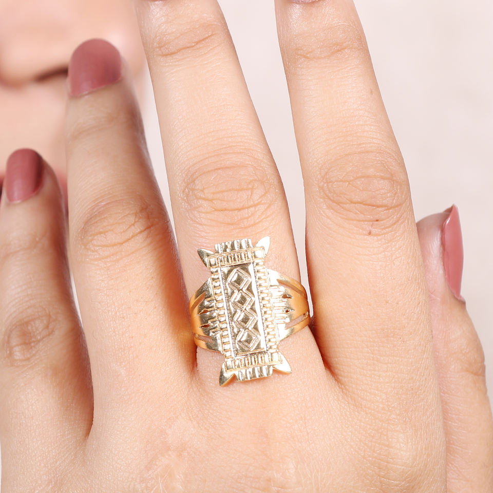 แหวนเงินแท้ 925 ชุบทอง 18K แบบฝังเพชรทรงเหลี่ยม สไตล์วินเทจ ดีไซน์ชนเผ่าฮิลล์ สำหรับผู้หญิง จากผู้ค้าส่งชาวอินเดีย เหมาะสำหรับงานแต่งงานและงานปาร์ตี้