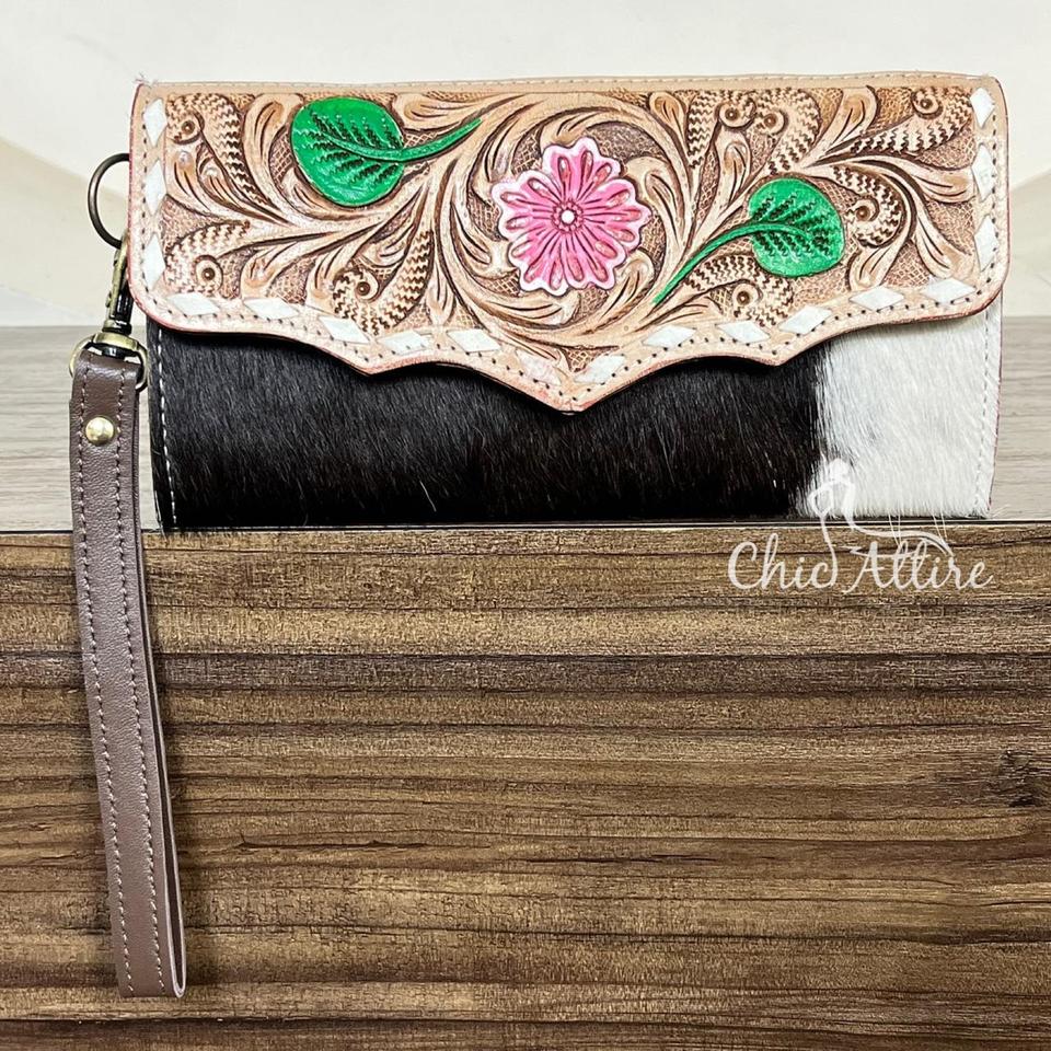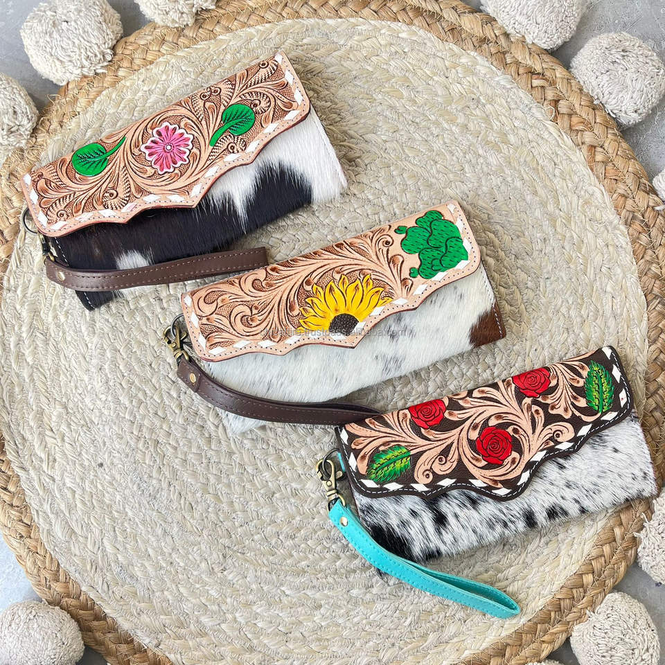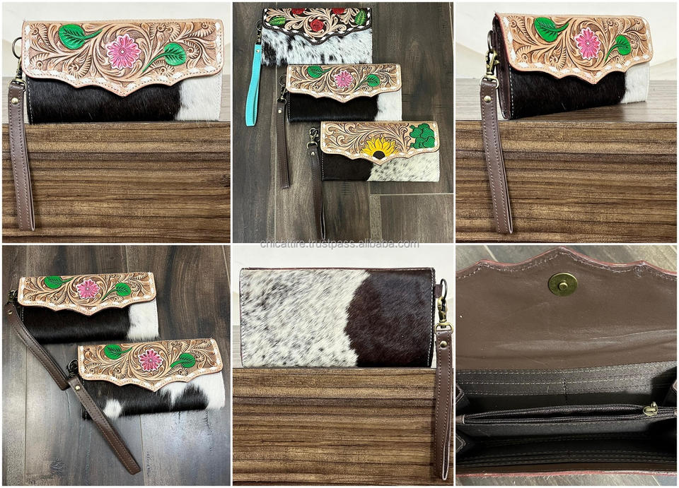 กระเป๋าคลัทช์หนังวัวแท้ลายดอกไม้ งานแฮนด์เมด ดีไซน์เก๋ไก๋ไม่ซ้ำใคร สำหรับผู้หญิง จากงาน March Expo