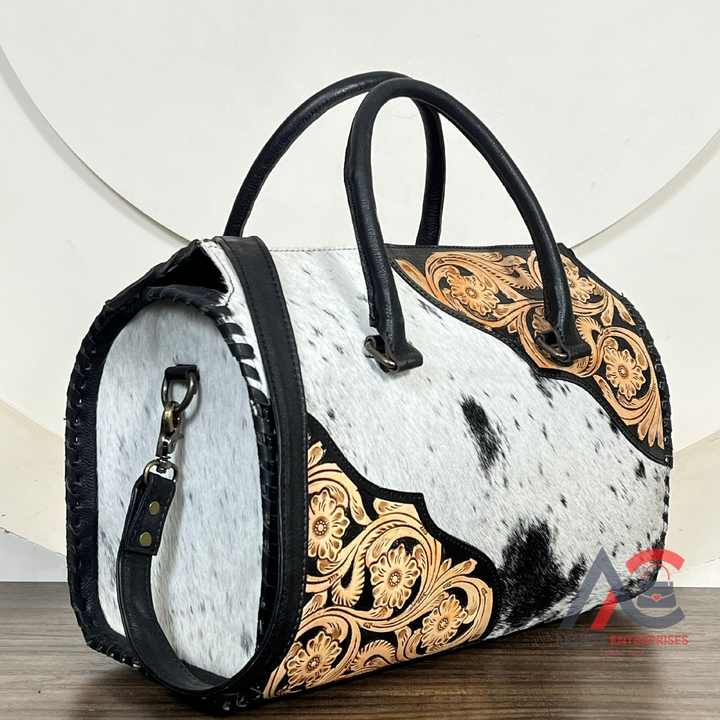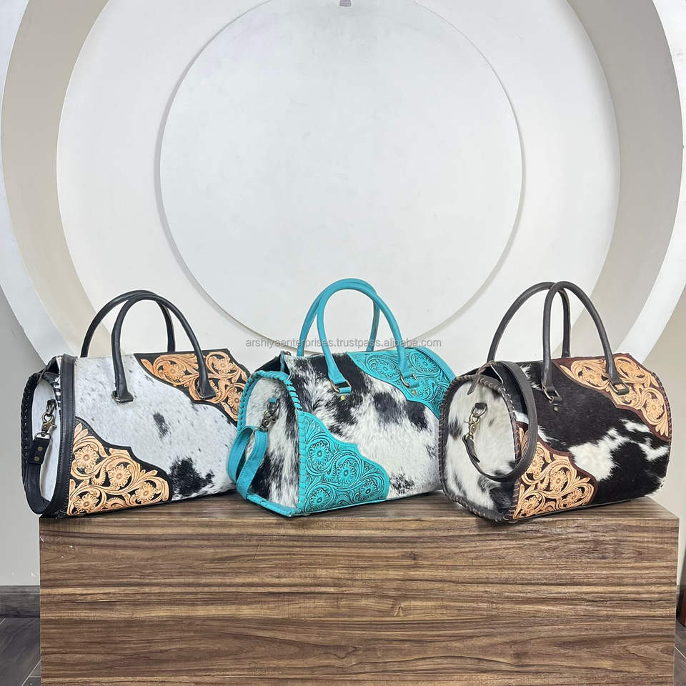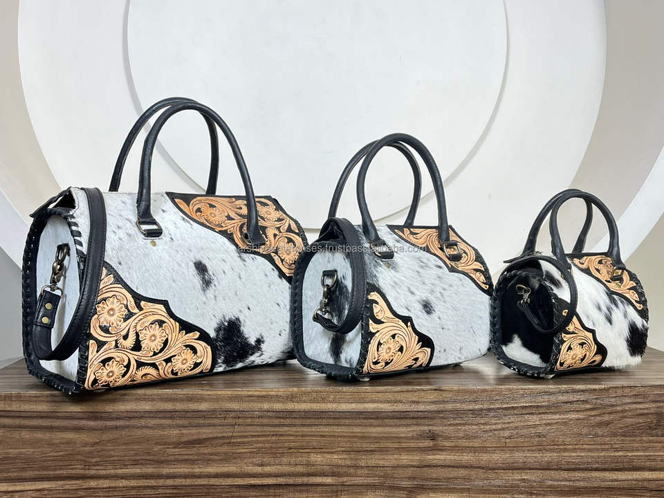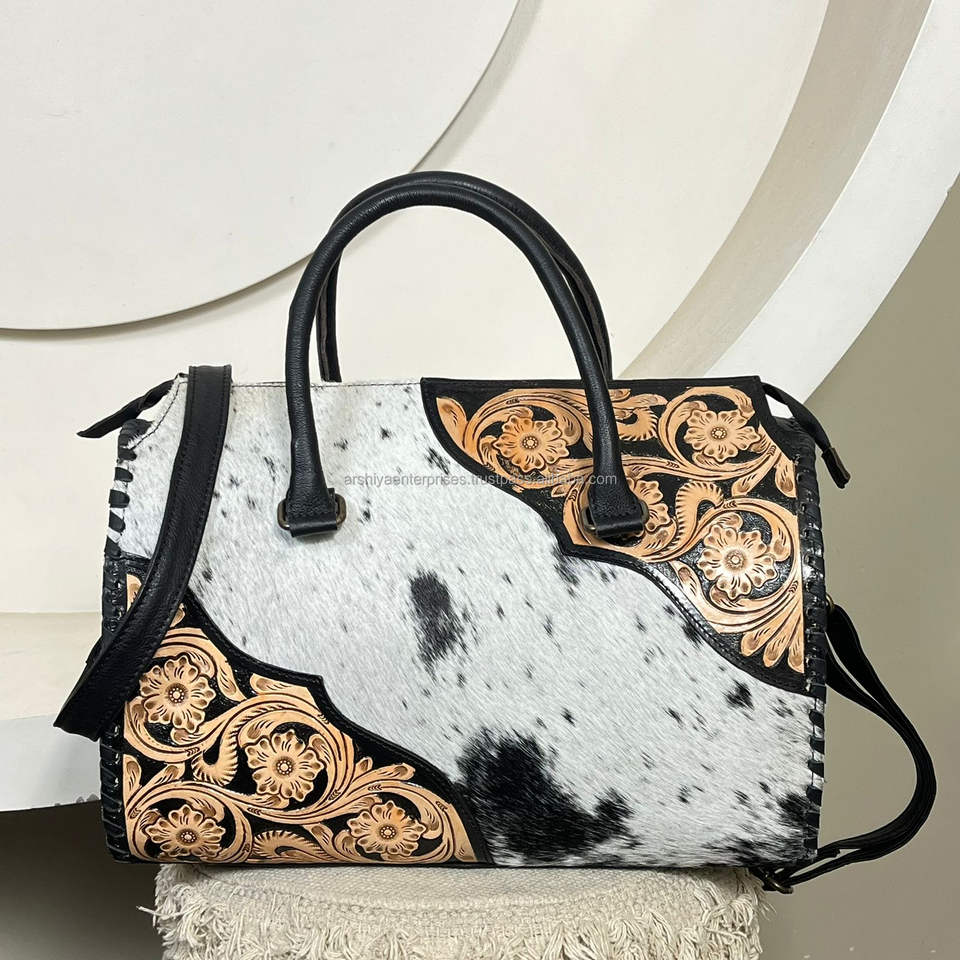 กระเป๋าหนังวัวแท้ลายดอกไม้สไตล์ตะวันตก งานแฮนด์เมด สำหรับงาน March Expo รับผลิตแบบ OEM ODM ขายส่ง กระเป๋าสะพายไหล่
