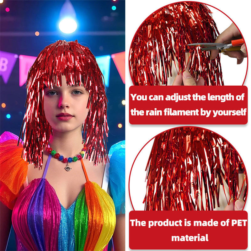 เครื่องแต่งกายของ Mardi Gras วิกผมแบบดิสโก้เงางามประดับด้วยฟอยล์สีสันสดใสสำหรับใช้ในงานปาร์ตี้กระเป๋าเก็บของใช้ตกแต่งอุปกรณ์ตกแต่งแบบใหม่