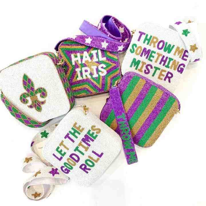 Mardi Gras กระเป๋าสตางค์สามสีผสมข้ามร่างกายพร้อมสายรัดกระเป๋าดีไซน์ไม่ซ้ำใครกระเป๋าถือปักลูกปัดงานแฮนด์เมด
