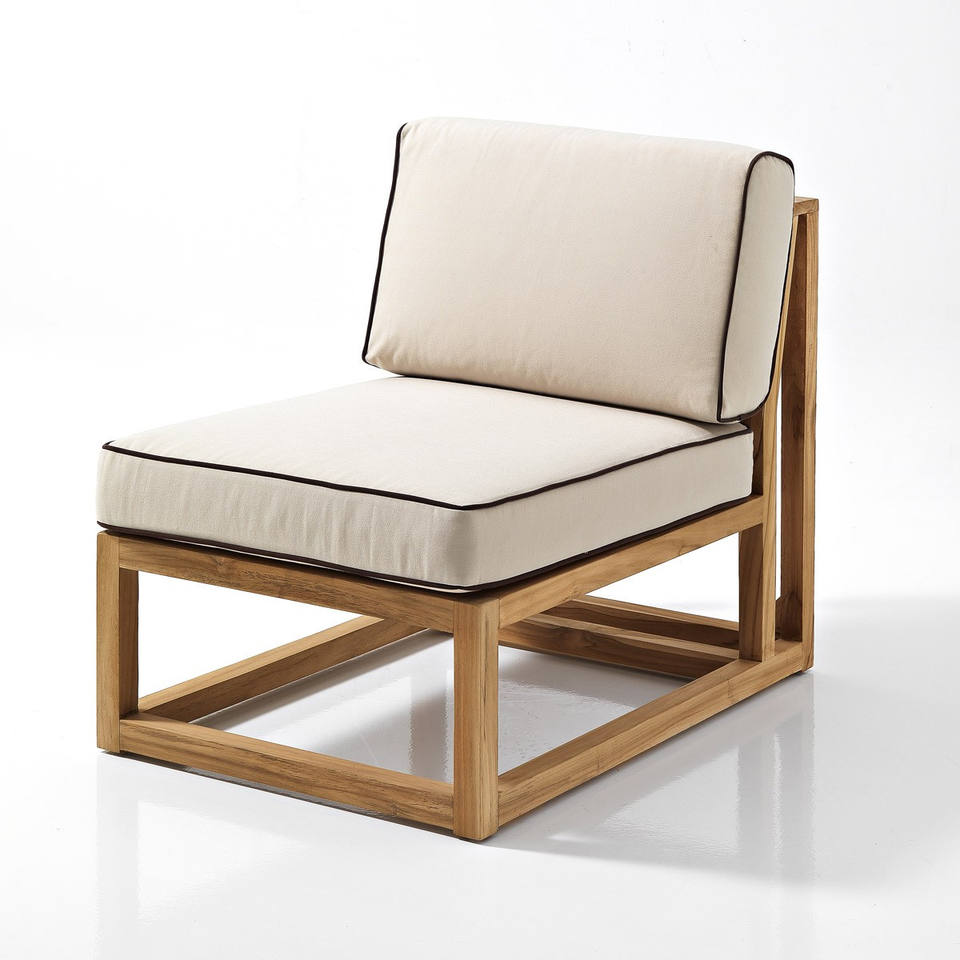 โซฟาไม้สักกลางแจ้งแบบที่นั่งเดี่ยว รุ่นโมเดิร์นมาเรีย พร้อมเบาะสีขาวทนทานต่อสภาพอากาศ ตกแต่งแบบธรรมชาติ เหมาะสำหรับโรงแรมและห้องนั่งเล่น