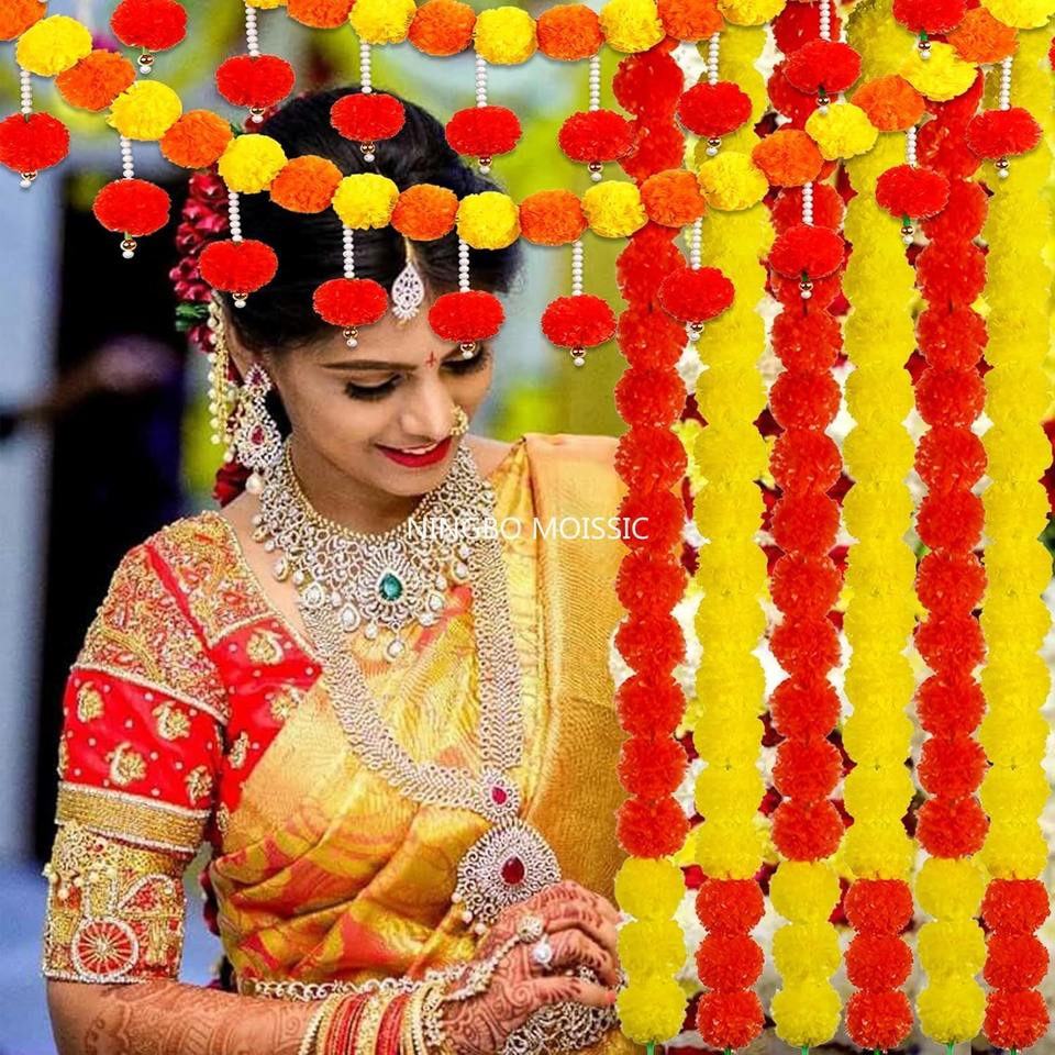 พวงมาลัยดอกดาวเรืองขนาด 60 นิ้ว สำหรับงานแต่งงาน คริสต์มาส พูจา ดอกไม้ประดิษฐ์แบบอินเดีย สายยาว ความยาวเท่าเท้า พวงมาลัยทำในอเมริกา