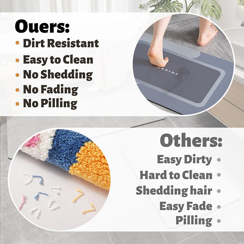 Marine Bath Mats 2 Pc Rectangle Diatomite Anti-Slip Absorbent Floor Mat For Home Bathroom