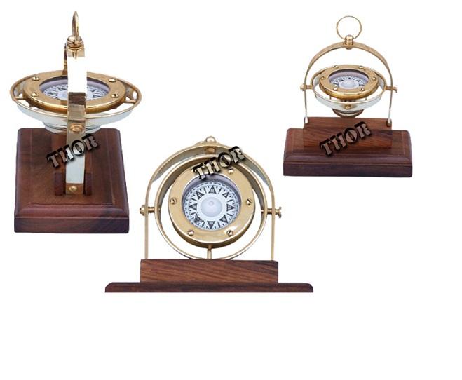 เข็มทิศทองเหลืองเดินทะเล,เข็มทิศวงแหวนวินเทจแบบโบราณสำหรับเป็นของขวัญเข็มทิศฐานไม้สำหรับสะสม