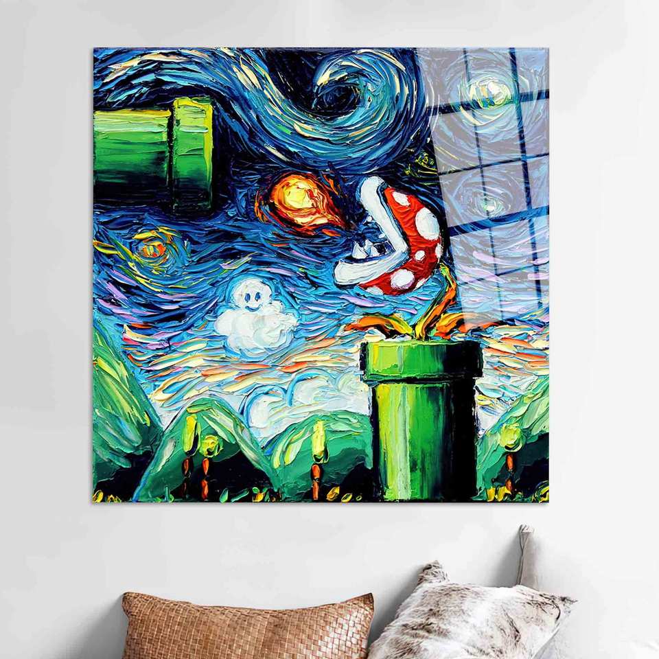 ศิลปะบนผ้าใบลายดาวดินแดนมาริโอ: ภาพพิมพ์สไตล์แวนโก๊ะ, ศิลปะบนกระจกนิรภัย