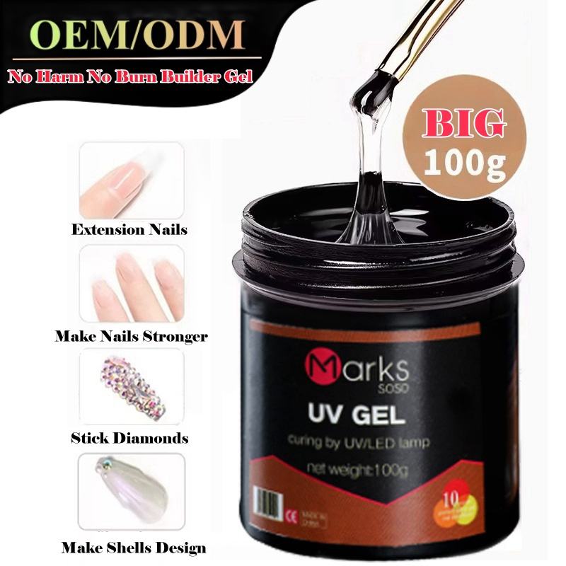 Soso เจลทาเล็บแบบแข็งสีชมพูใสสีขาวขนาด100กรัมเจลทาเล็บแบบกันแสงยูวีสำหรับตกแต่งเล็บ