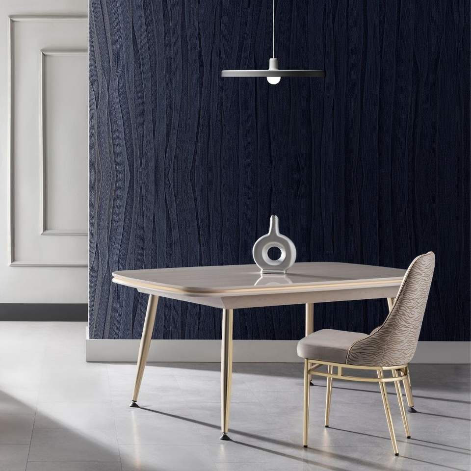 โต๊ะรับประทานอาหารหินอ่อนหรูหรา Marmaris สำหรับ 6 ที่นั่ง ขาสีทอง MDF ทันสมัย ชุดโต๊ะสำหรับห้องรับประทานอาหาร