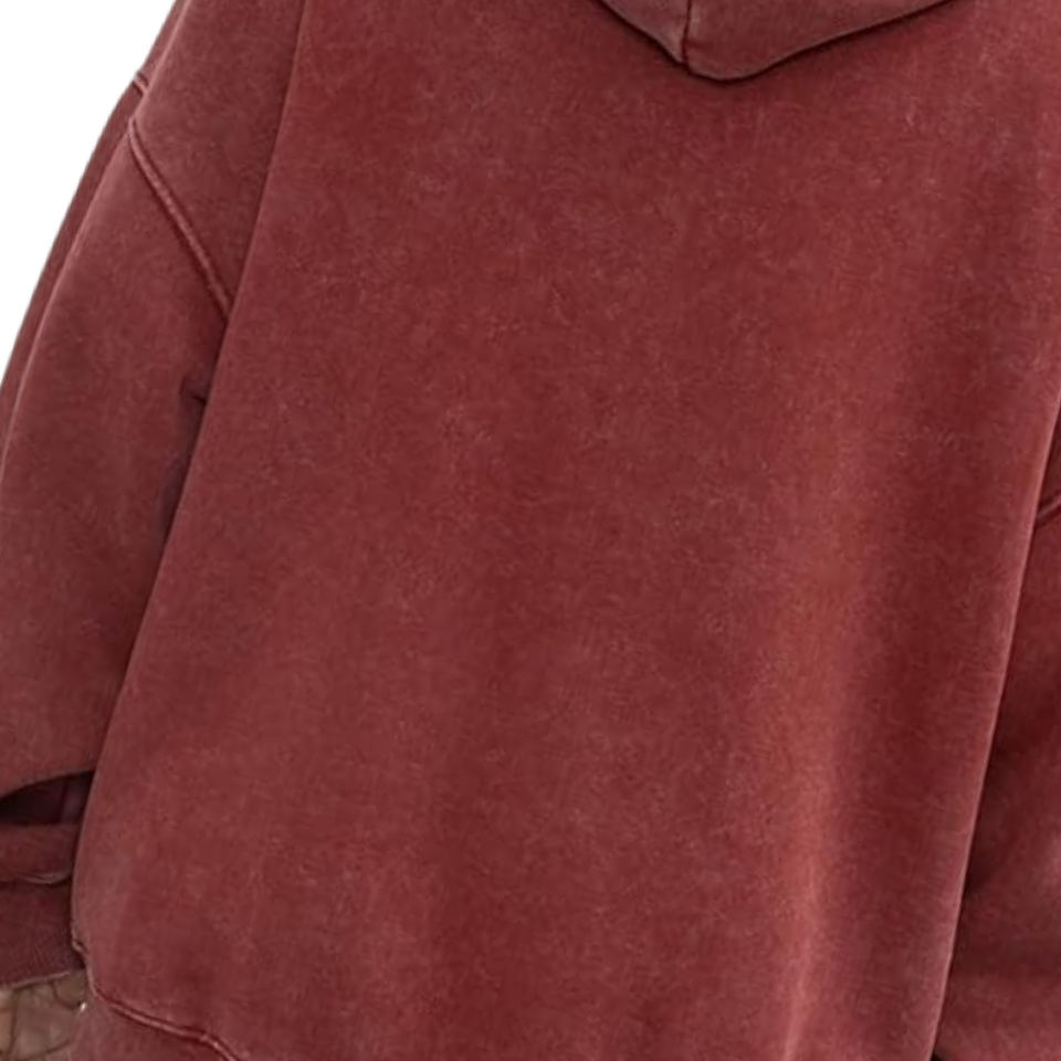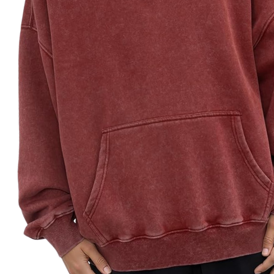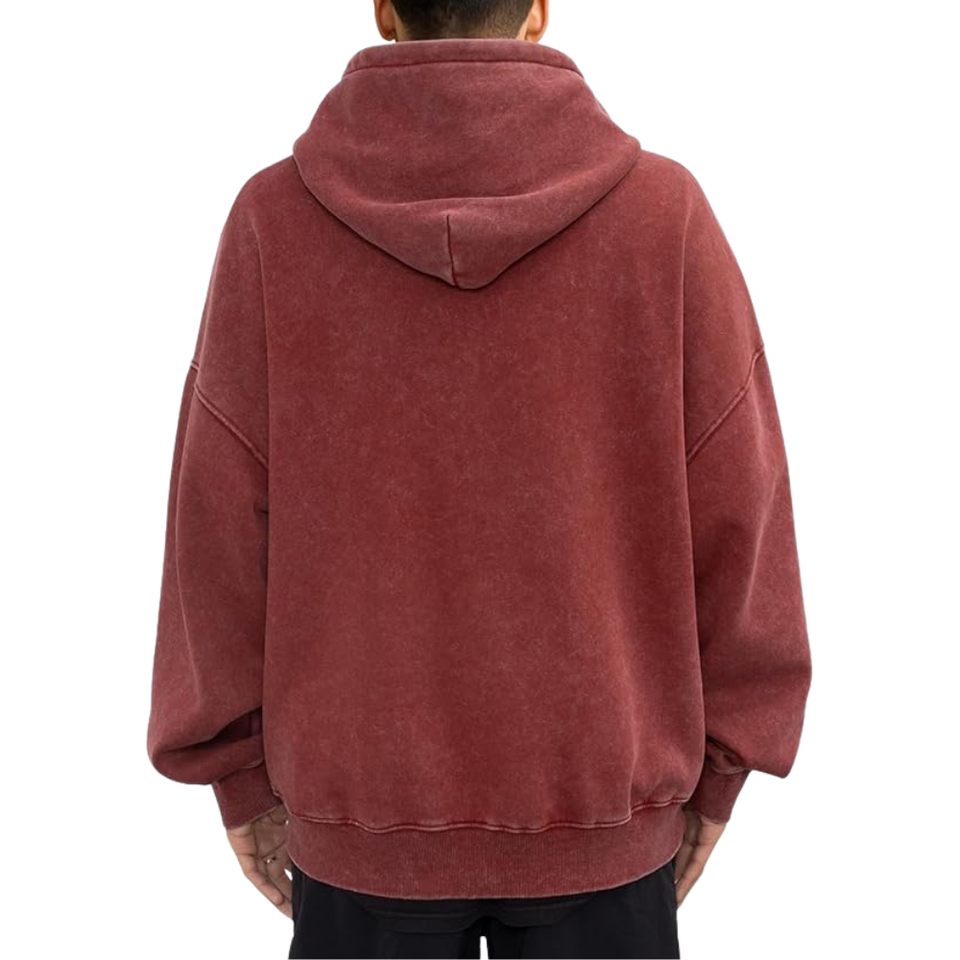 เสื้อฮู้ดดี้สีแดงอมน้ำตาลฟอกสีสไตล์วินเทจ ทรงโอเวอร์ไซส์ ผ้าฟลีซนุ่ม สตรีทแวร์ เสื้อกันหนาวแฟชั่นฤดูหนาว สำหรับผู้ชายและผู้หญิง