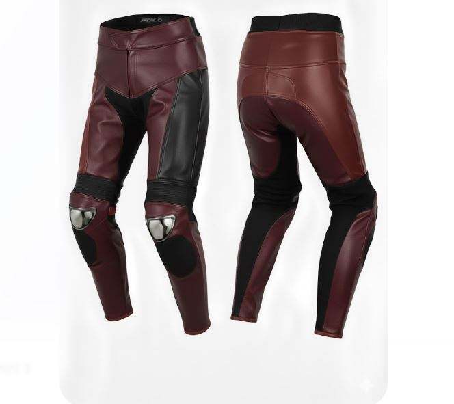 กางเกงหนังสีดำแดงเลือดหมูสำหรับนักขี่มอเตอร์ไซค์