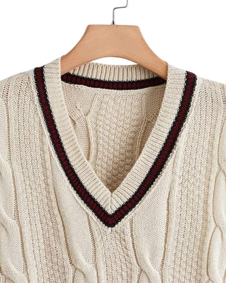 เสื้อกั๊กไหมพรมถักลายเคเบิลสีดำแดง คอวีลายทาง สไตล์ลำลอง เนื้อผ้านุ่ม แฟชั่นผู้ชายสำหรับฤดูหนาว