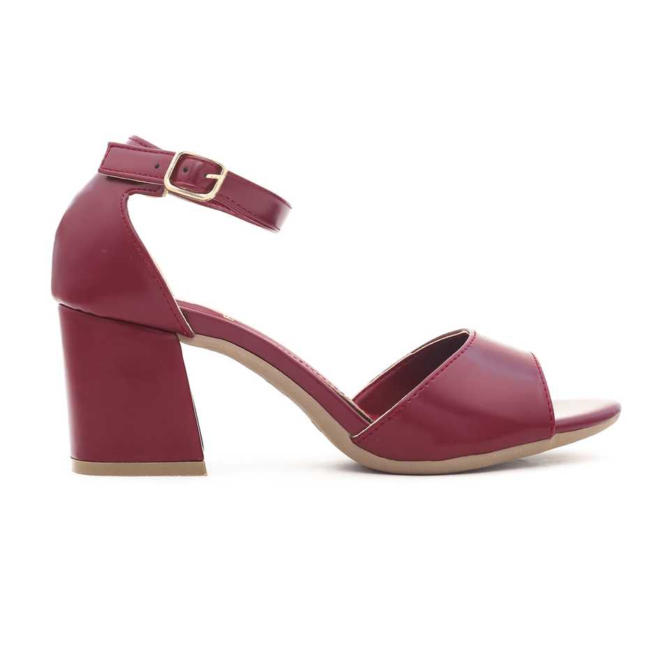 รองเท้าแตะส้นหนาสายรัดข้อเท้าแบบทางการของผู้หญิงสีแดงเข้ม FR5005รองเท้าแตะส้นตึกหัวเหลี่ยมสำหรับงานแต่งงานและงานปาร์ตี้