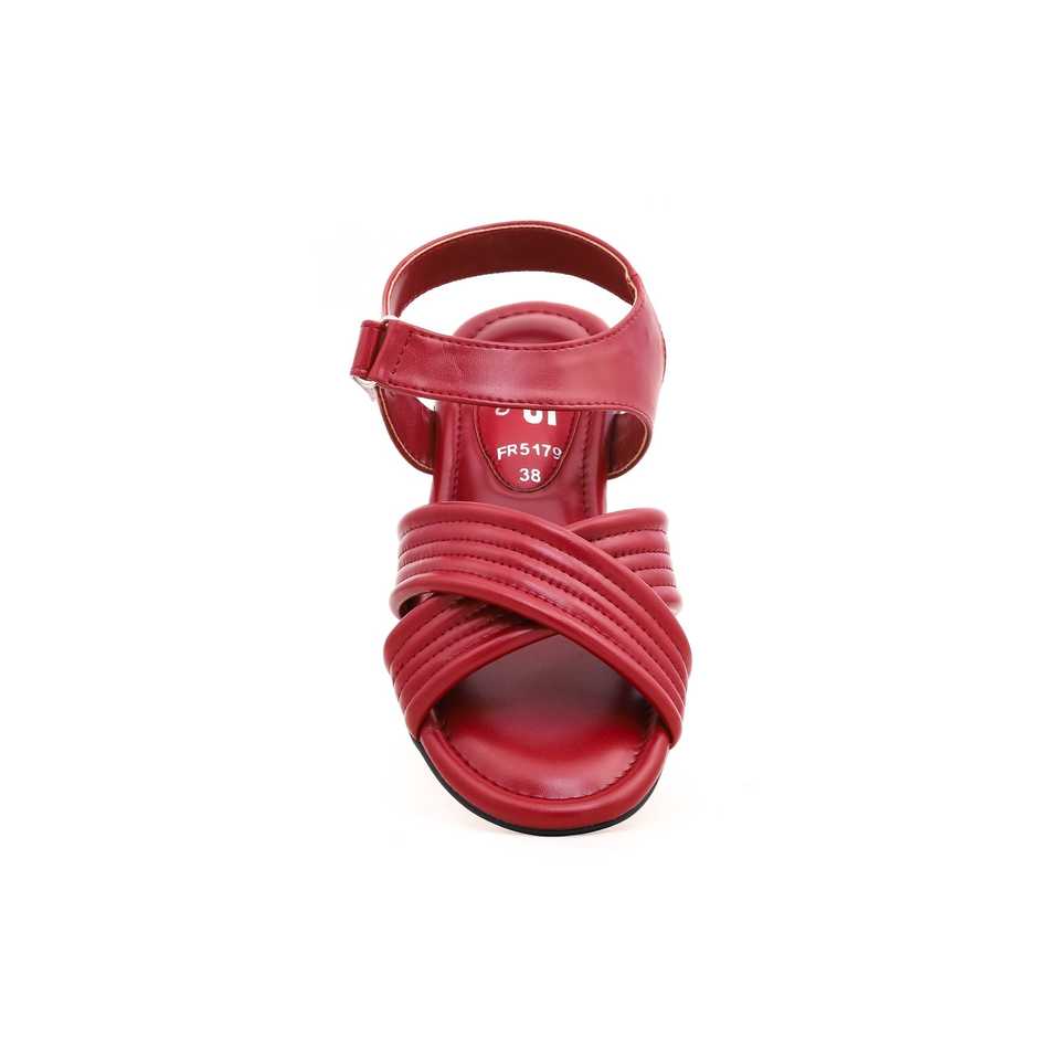 รองเท้าแตะส้นหนาสายรัดข้อเท้าแบบทางการของผู้หญิงสีแดงเข้ม FR5179รองเท้าแตะส้นตึกหัวเหลี่ยมสำหรับงานแต่งงานและงานปาร์ตี้