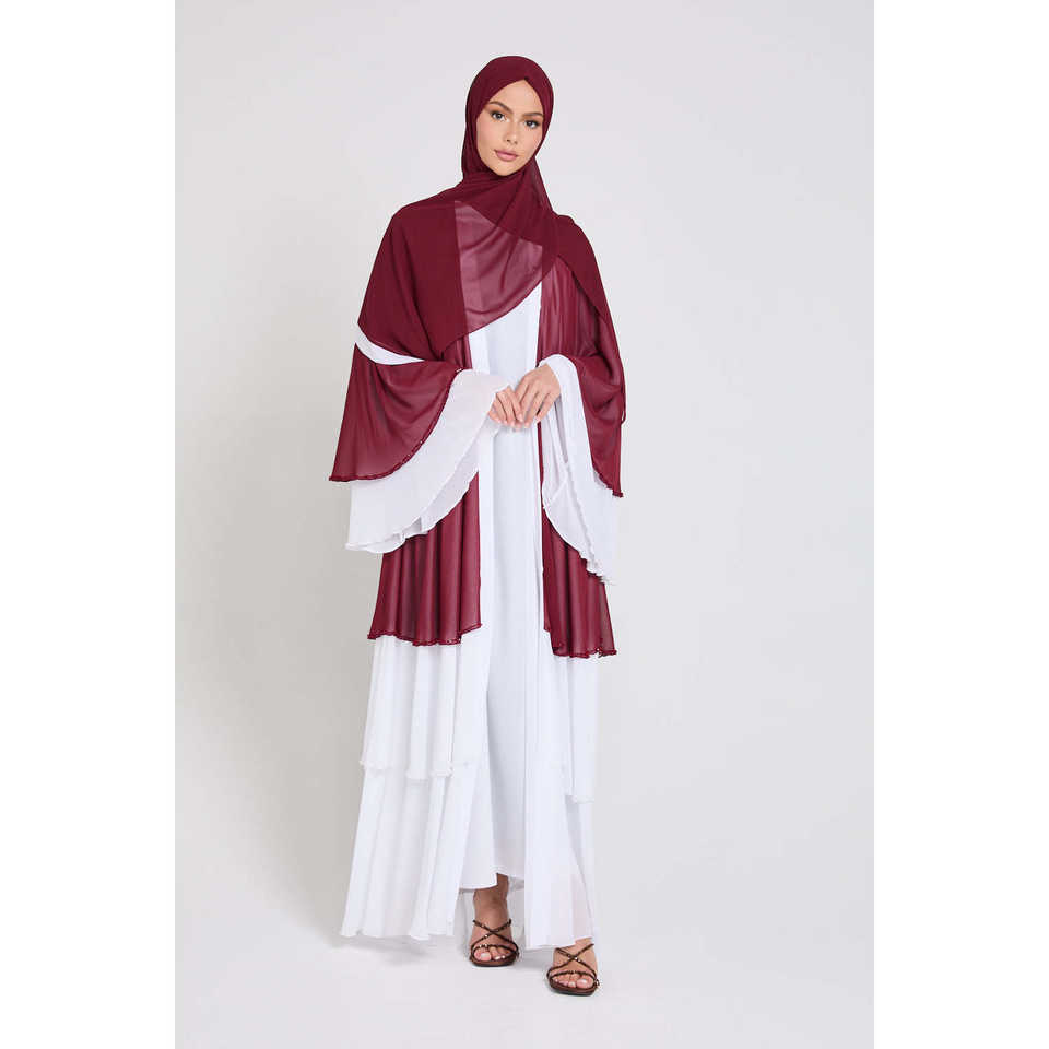 ชุดกีฬาสไตล์อาหรับแบบเปิดประดับด้วยการออกแบบเป็นชั้นๆสีแดงและสีขาว