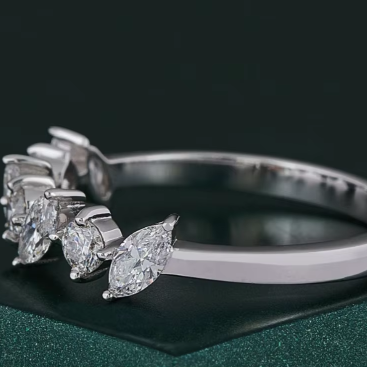 แหวนเพชรโมอิสซาไนต์ทรงมาร์ควิสและทรงกลม เงินแท้ 925 ของขวัญสำหรับเธอ