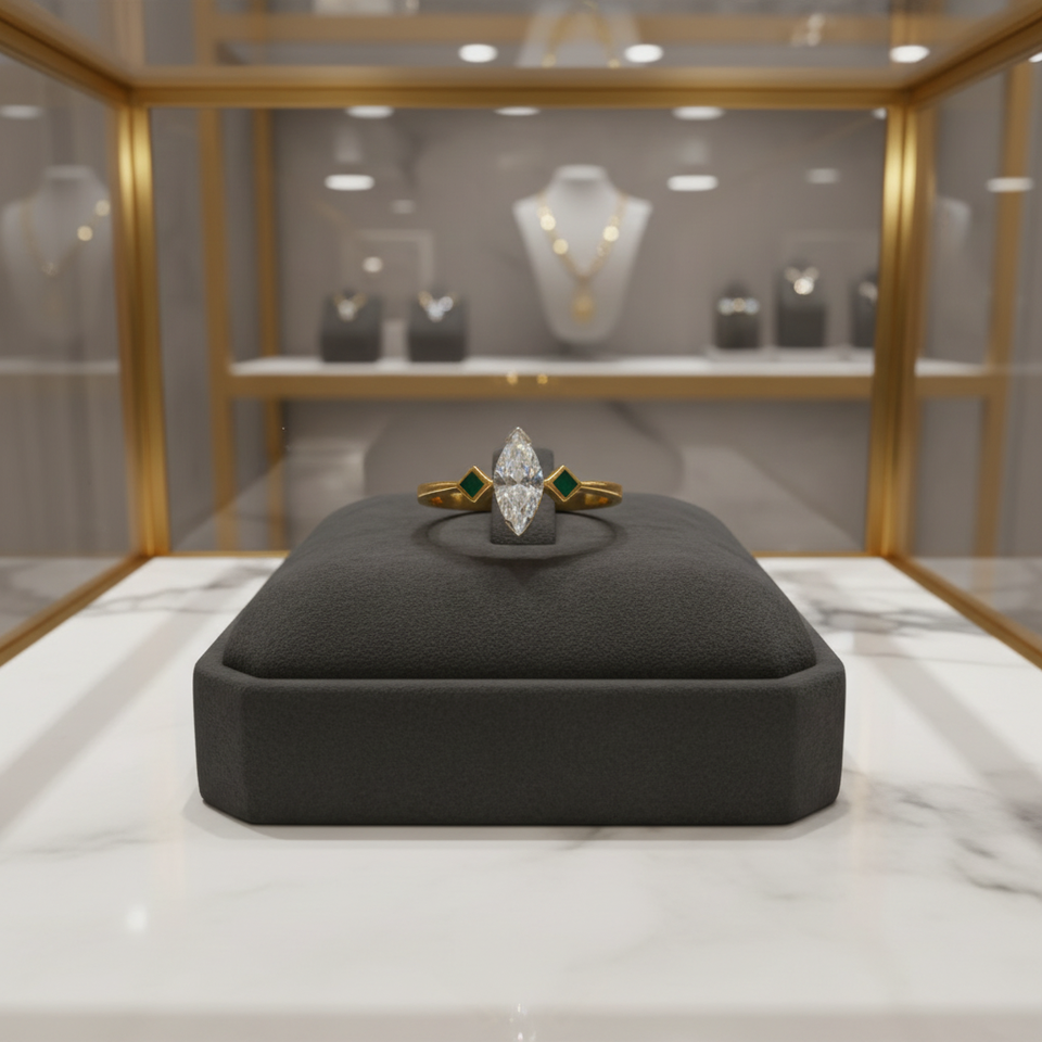 แหวนทองดีไซน์ Marquise-Center ผลิตจากทอง 22K พร้อมดีเทลข้างที่เรียบหรู
