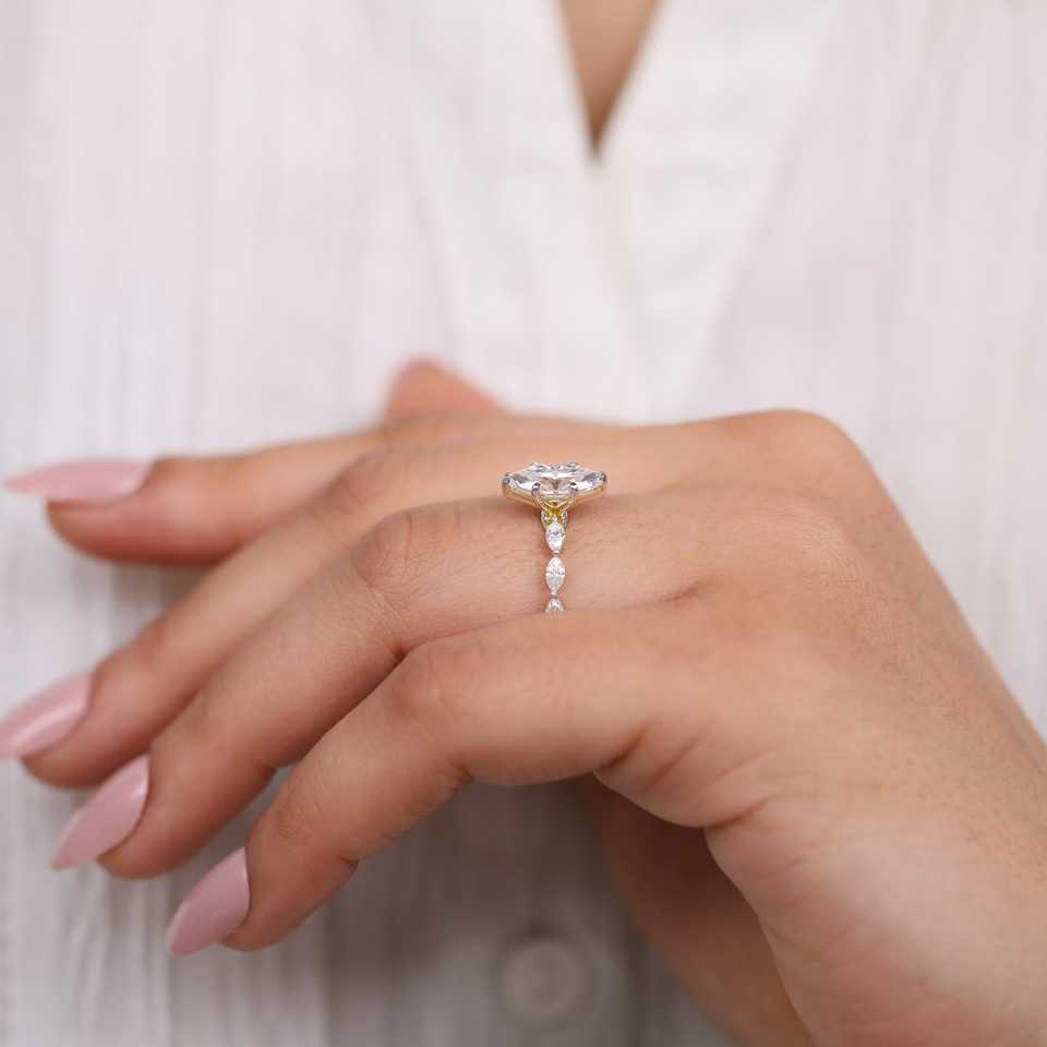 แหวนหมั้นเพชรแบบโซลิแทร์สำหรับผู้ใหญ่ตัดจากหินด้านข้างแหวนทองเงินสเตอร์ลิงแหวนเพชรใส VS1สำหรับห้องปฏิบัติการ