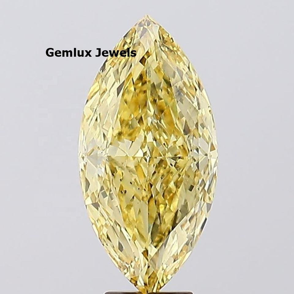 เพชรทรงมาร์ควิส 2.5 กะรัต สีเหลืองสดใส ได้รับการรับรองจาก IGI ความสะอาดระดับ VS เพชรหลวมที่ผลิตในห้องปฏิบัติการสำหรับแหวน