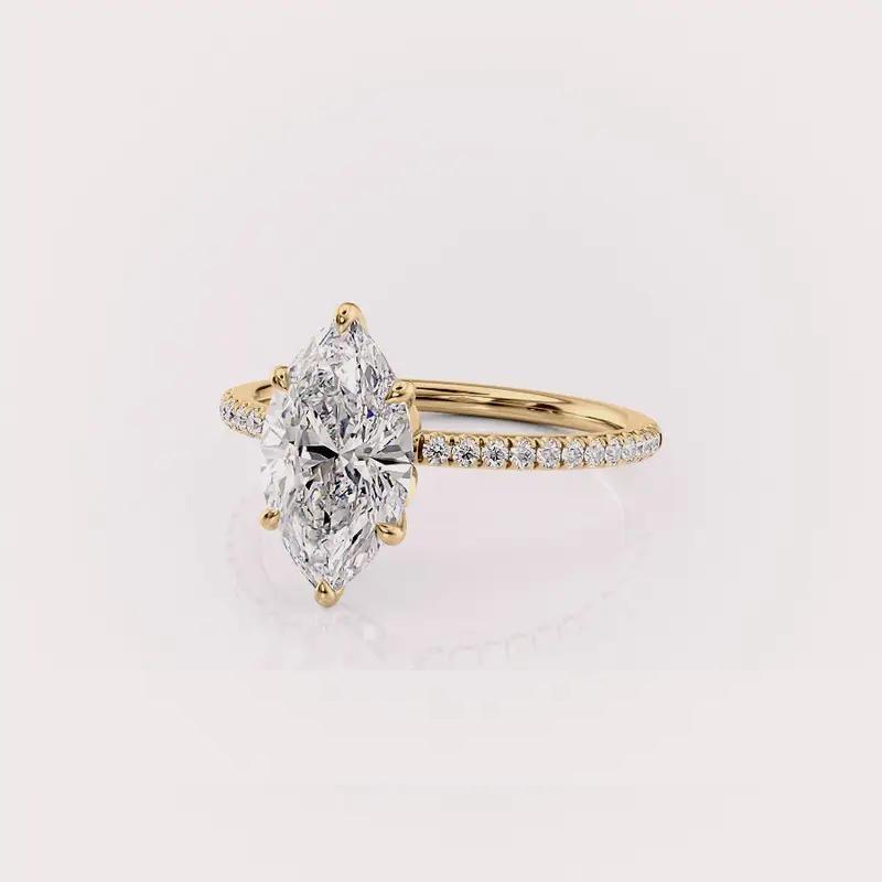 แหวนหมั้นเพชรทรงมาร์คีส์ เพชรเลี้ยงในห้องปฏิบัติการ รับรองโดย IGI ชุบโรเดียม ดีไซน์เรียบหรู ฝังแบบกรงเล็บ วงแหวนแบบพาเว่ ทอง 14K สีเหลือง/ขาว/โรสโกลด์