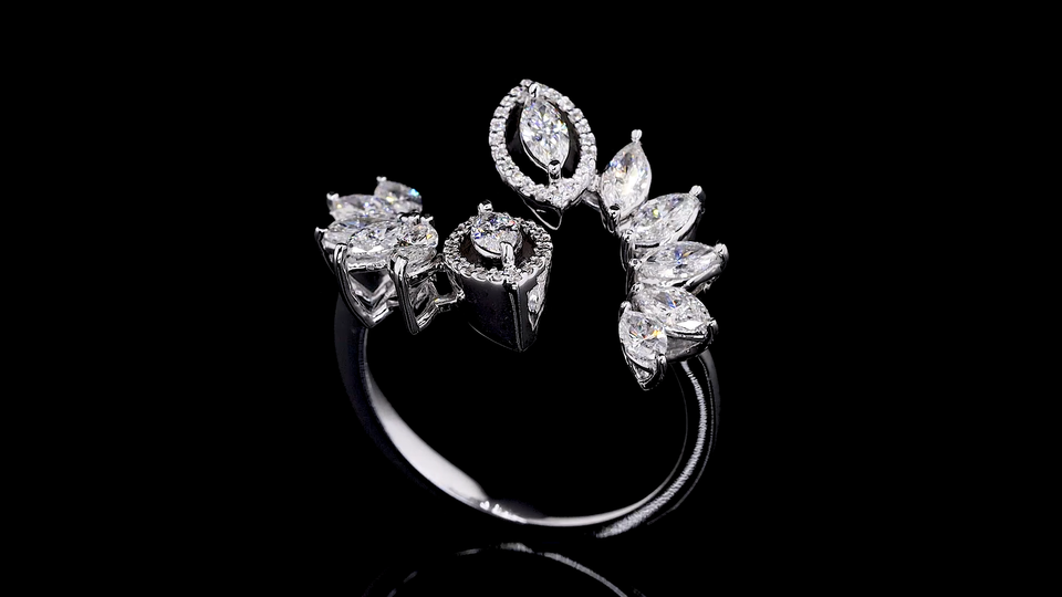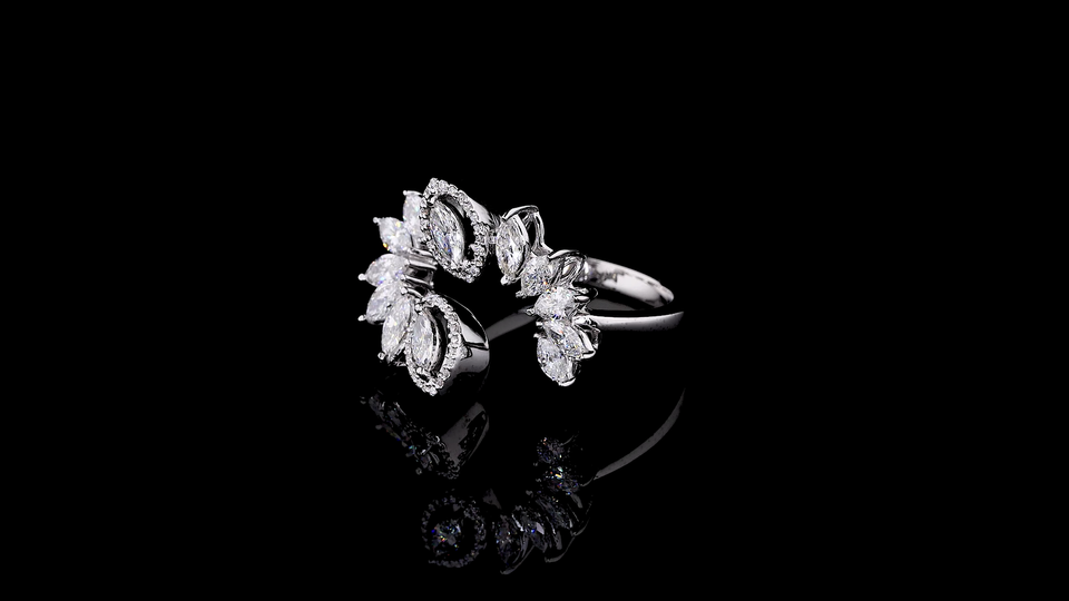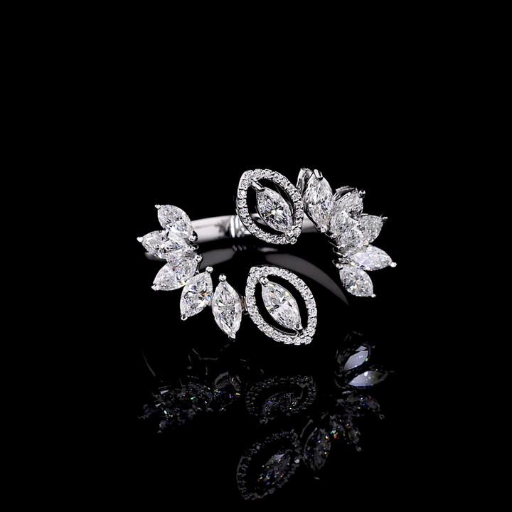 แหวนเพชรทรงมาร์คีส์คัทเพาะเลี้ยงในห้องปฏิบัติการ ตัวเรือนทองคำขาว 18KT | แหวนค็อกเทลลายดอกไม้รับรองโดย IGI สำหรับผู้หญิง