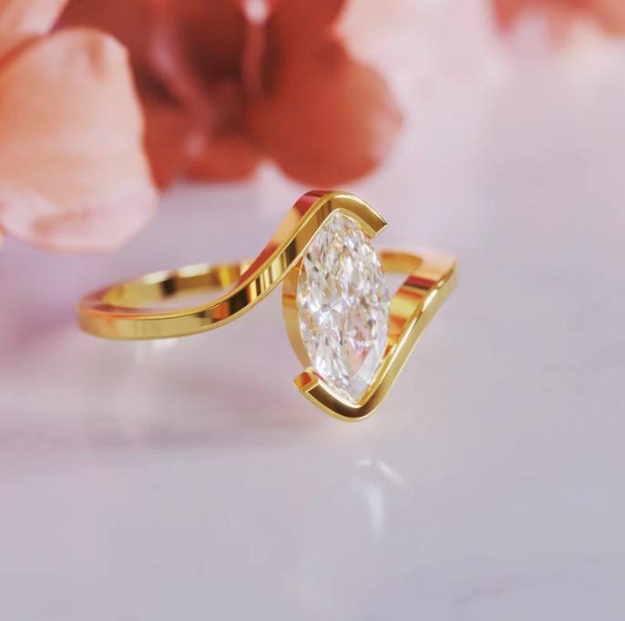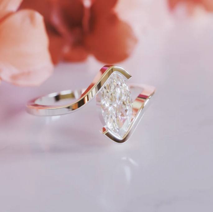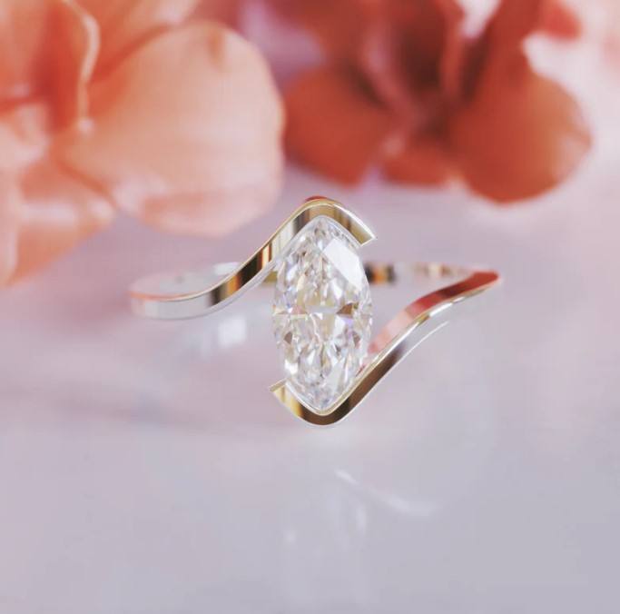 แหวนหมั้นเพชรโมอิสซาไนต์ทรงมาร์คีส์ ชุบทอง 18K เครื่องประดับเงินแท้สุดหรูสำหรับผู้หญิง